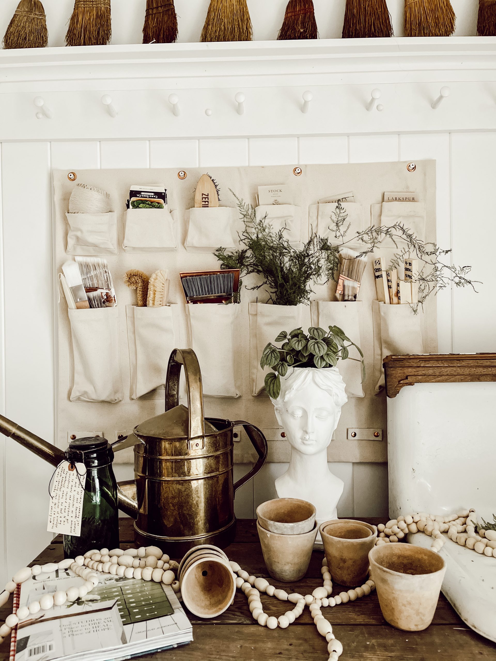 If you are shopping for any antiques I highly recommend checking out Elsie Green. I got a bunch of new antique finds from them that I wanted to share with you! Not only do they sell smaller items like vases, art, and linens but they also have gorgeous furniture pieces. I wanted to share a few photos of these items styled in our home & hopefully it inspires you for ways to use your antiques in your home! I placed my first order recently with Elsie Green & I’m so thrilled with how things arrived and how they all look in our home. I left some of the tags on the items so you can see part of the packaging that comes on the items. They come with these large tags that tell you about how the items used to be used and how you can style them now.