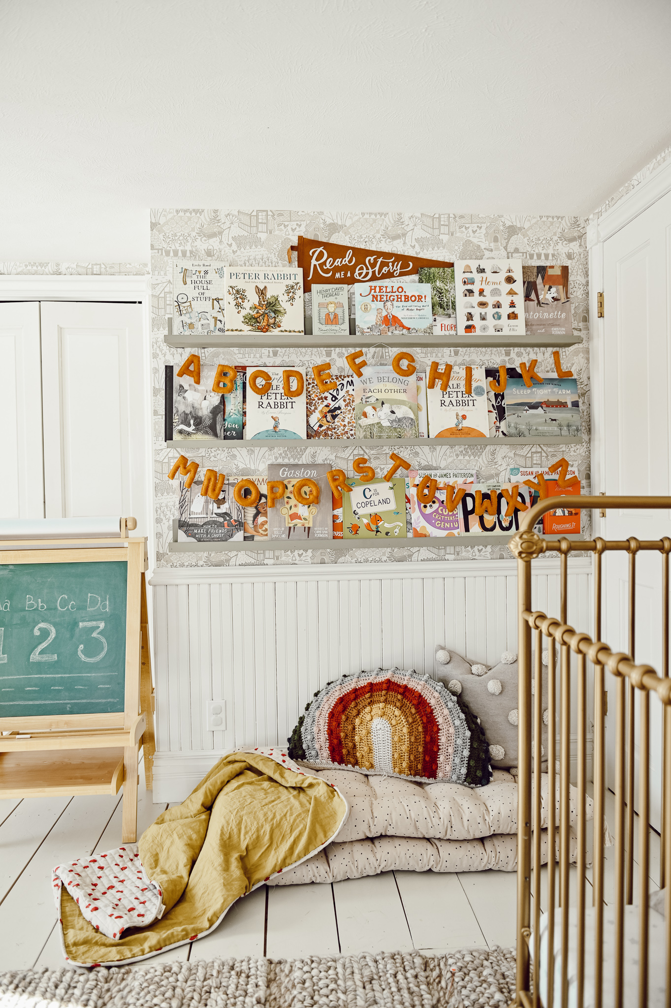 It’s a super simple DIY project and could easily be added to any kids room! You can leave the shelves wood or paint them to match the theme of the room. I love the versatility and customizability of these shelves, they make a great addition to any kid’s bedroom! In Cope’s reading corner we have some throw beds, pillows, and blankets to cozy up as we read stories together. The ABC banner is a find from Tweed. If you are interested, I linked some of our favorite children’s books on the blog here. Thank you for stopping by the blog, if you try out this DIY don’t forget to tag me so I can see!