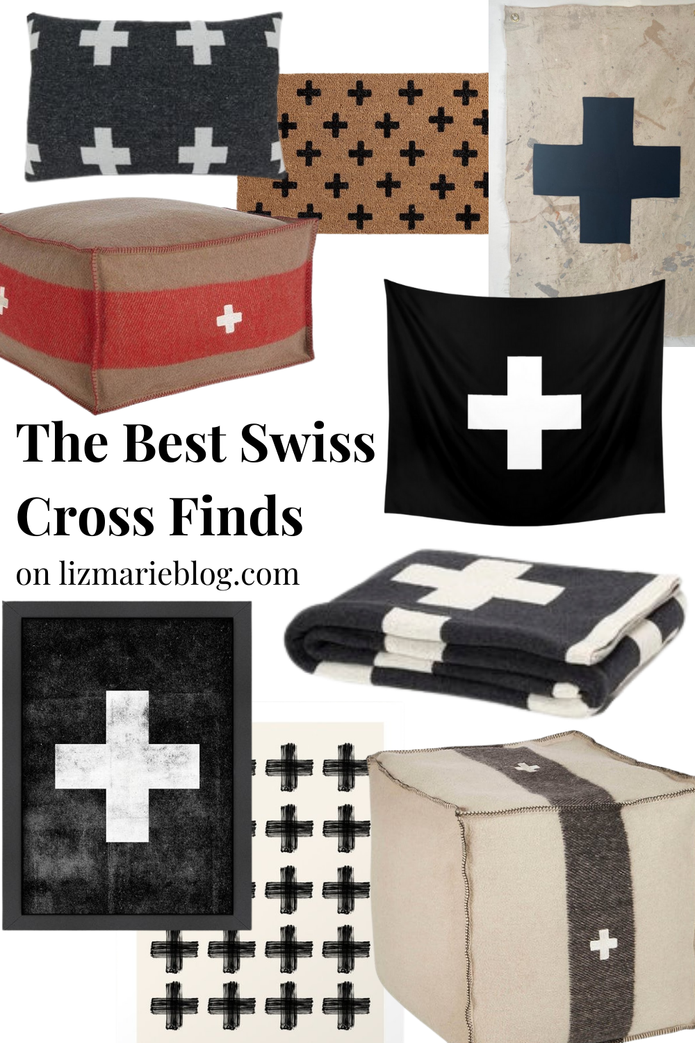 I’ve found a few really great swiss cross pieces this past year and you guys have loved them as much as I have. Most of those pieces I’ve found have been from small shops or vintage finds. Since I don’t have a source for those items, I decided to try to find some for you! Below I’ve linked all of the different swiss cross items I could find including pillows, throw blankets, poufs, prints, and more.