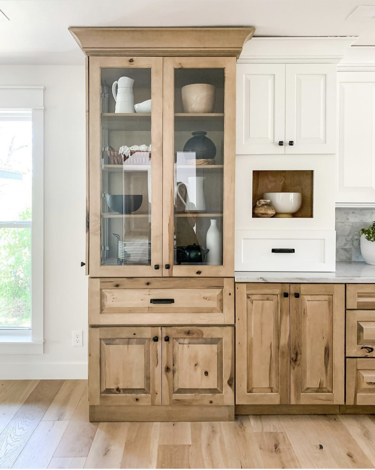 I love this little peek into the kitchen of @maisondepax. The mix of wood and white cabinets are so special, and I also love that she added a little peekaboo window into one of her cabinets. It’s the little details, for me.