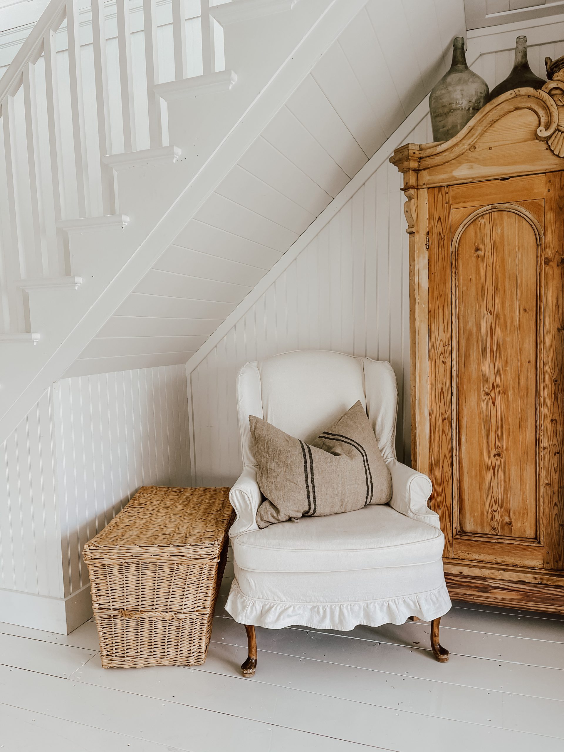 I can’t seem to ever leave an antique shop without a basket or two. These are both so unique and different. I love the lidded one for storage & the other basket I’m thinking of using in the garden.