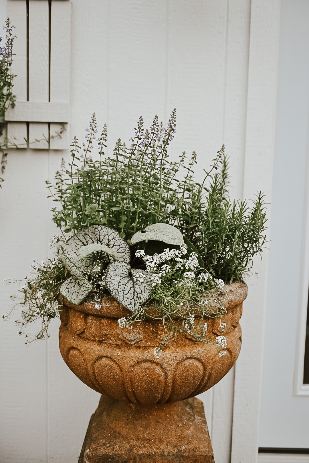 Catmint is an aromatic herb that is commonly grown in the garden. It produces clusters of lavender-blue flowers amid mounds of gray-green foliage. Easy to keep in a container as it can spread and over-grow easily. I love adding some nepeta to our spring window boxes.