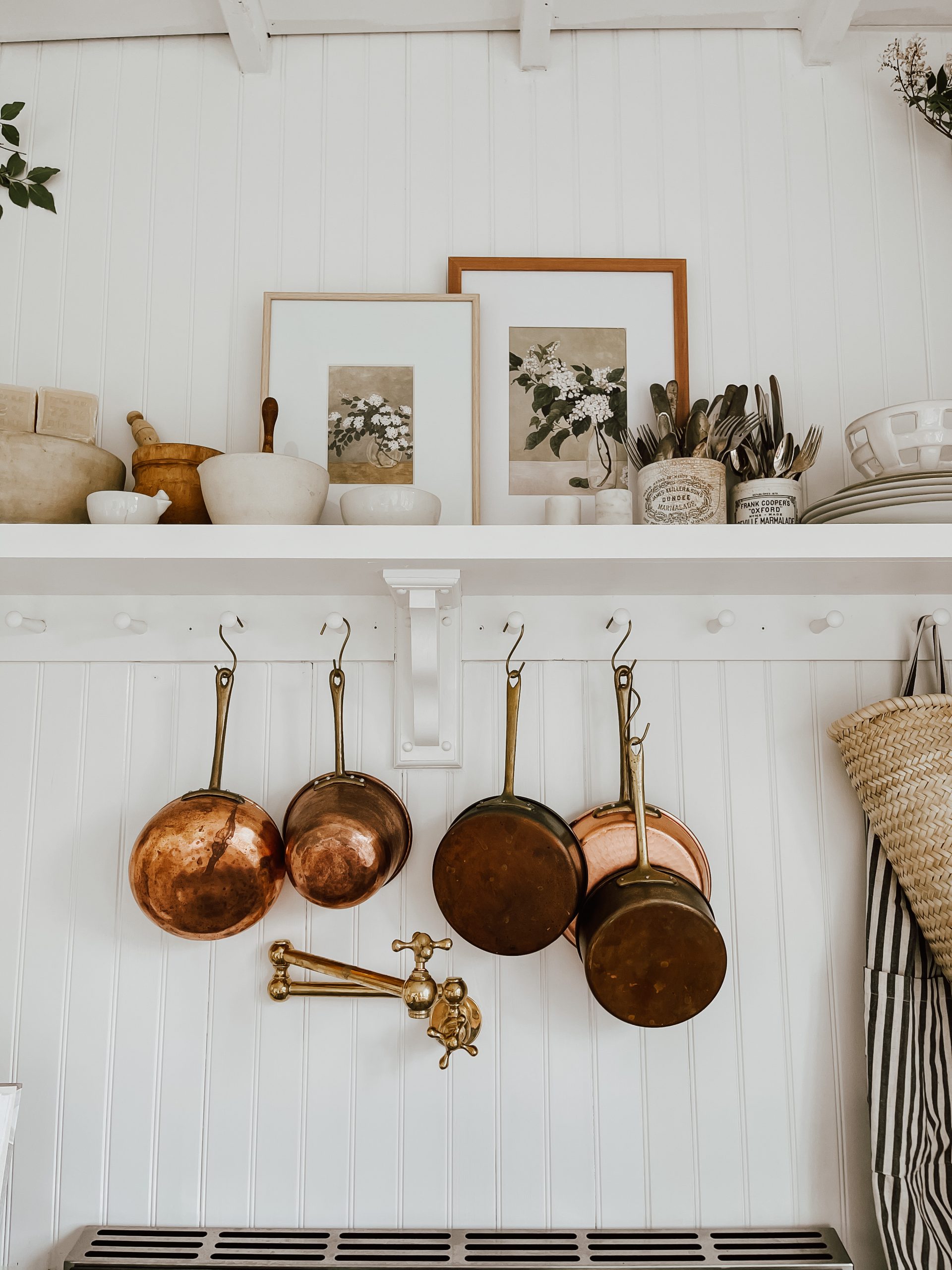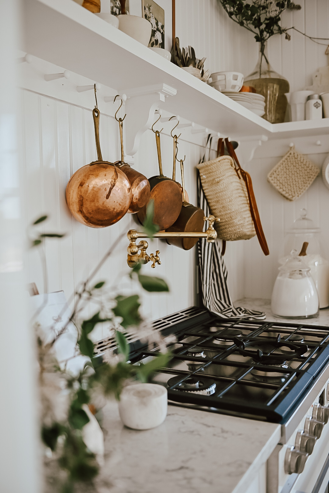 Just this past week we installed this pot filler for above our range. It finally feels like all the puzzle pieces are coming together. I have always dreamt of having this feature in our home and I’m so glad we finally went through with adding one. Here [HERE] is the pot filler we ended up going with! We purchased it from the same Etsy seller who handcrafted our faucet [HERE]. I feel like its the perfect little quirky french cottage style addition to our kitchen.