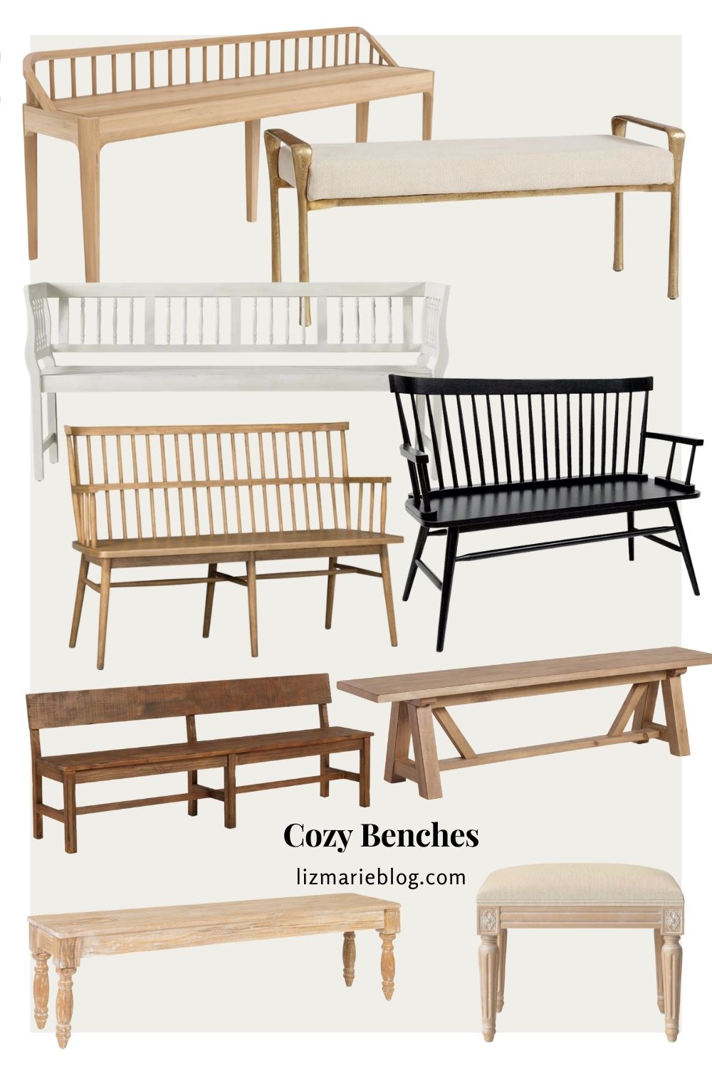 I love chatting with so many of you in my messages because it gives me so many ideas for what you are all looking for when it comes to furniture and home decor. A couple of weeks ago coincidentally I had 3 of you reach out and ask about benches! What a great idea for a blog post-round-up! There are so many different types of benches that work in every single room. Whether you want to have benches around a dining room table for easier gathering, or a tufted bench at the end of your bed, there are so many uses for a good bench! I did a round-up of different cozy benches and will continue to add more as I find them!