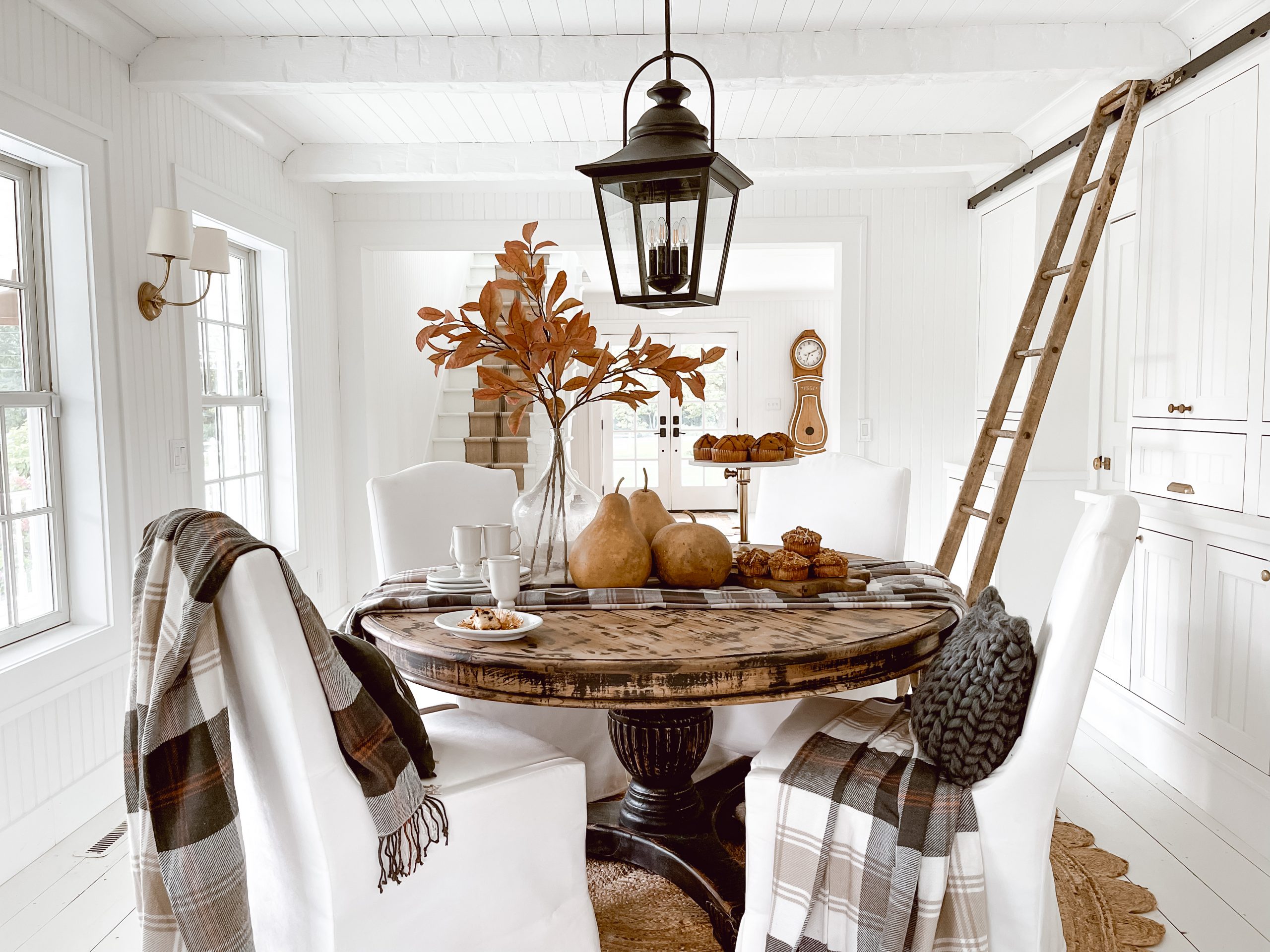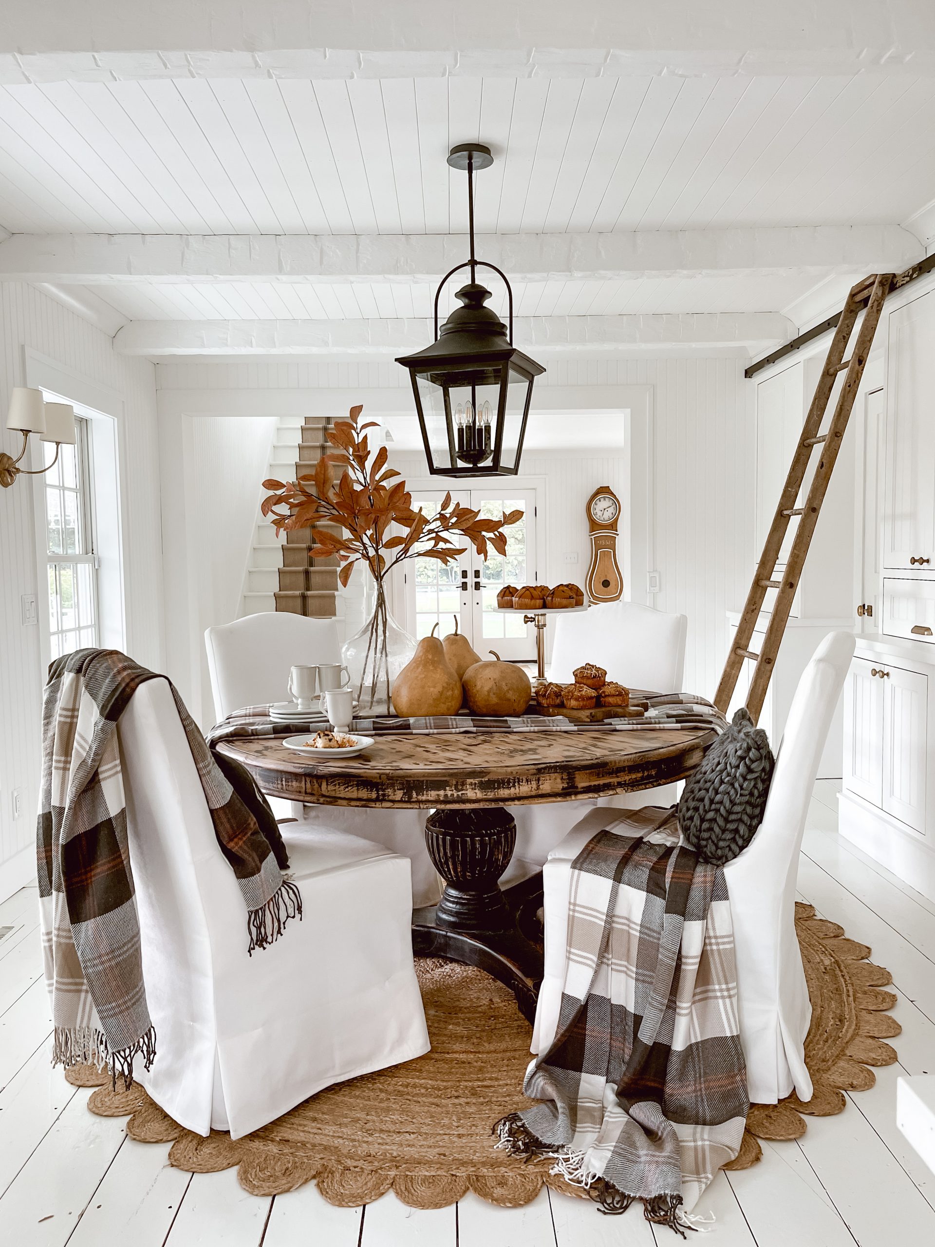 That is as simple as it goes. I hope you enjoy this simple Cozy Plaid fall tablescaple and are thinking of a few items you may already have to get this same look. Fall decor has a special place in my heart here on the farm, and I hope to bring you many many more ahead of the seasons to help you get your favorite looks this year. Ps. Did you sneak a peek at the new clock we got in today in the background? More on that later! Thank you for stopping by blog today and every other day, it truly means the world to me!