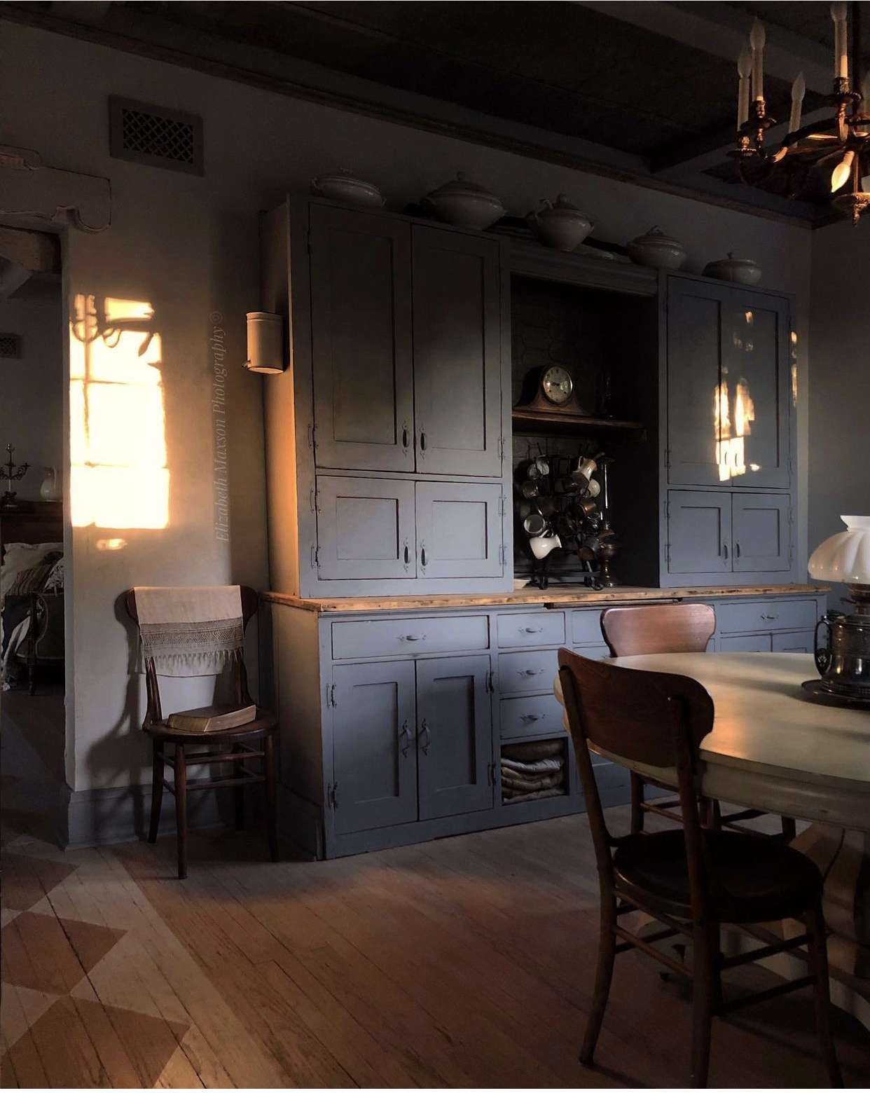 The morning light that is peeking through @elizabeths_humble_house dining area and shining slightly onto her antique cabinet is beautiful! If you head over to her page, you can also see this space in daylight and see how different lighting can make a room look.