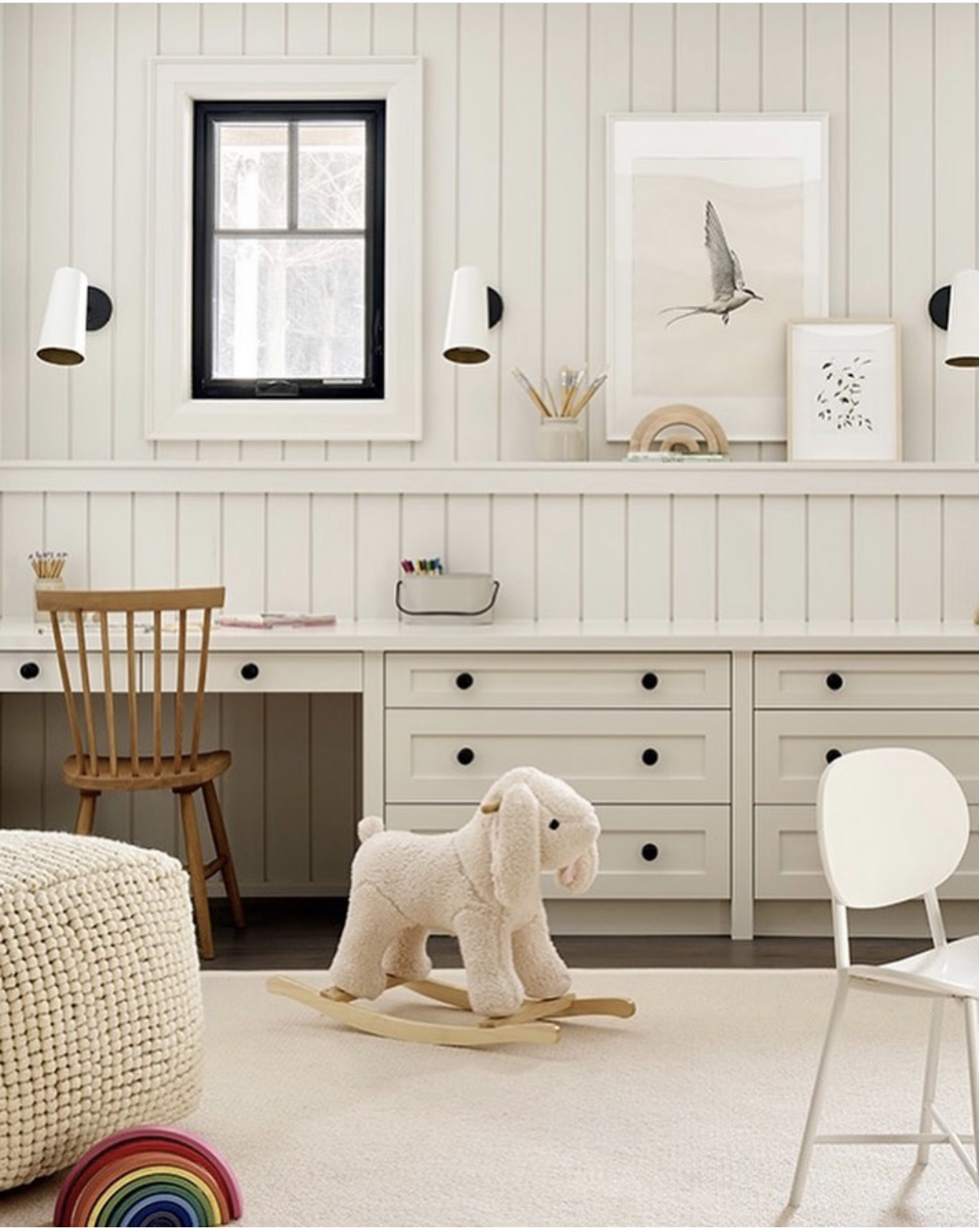 The cozy cabinetry that @tiffanyleighdesign added into this darling children’s room is equally aesthetically pleasing and also so functional! You know how much I love using neutral colors in our home, and using neutral colors in a children’s room gives the opportunity to change up the room as their needs change and they grow older.