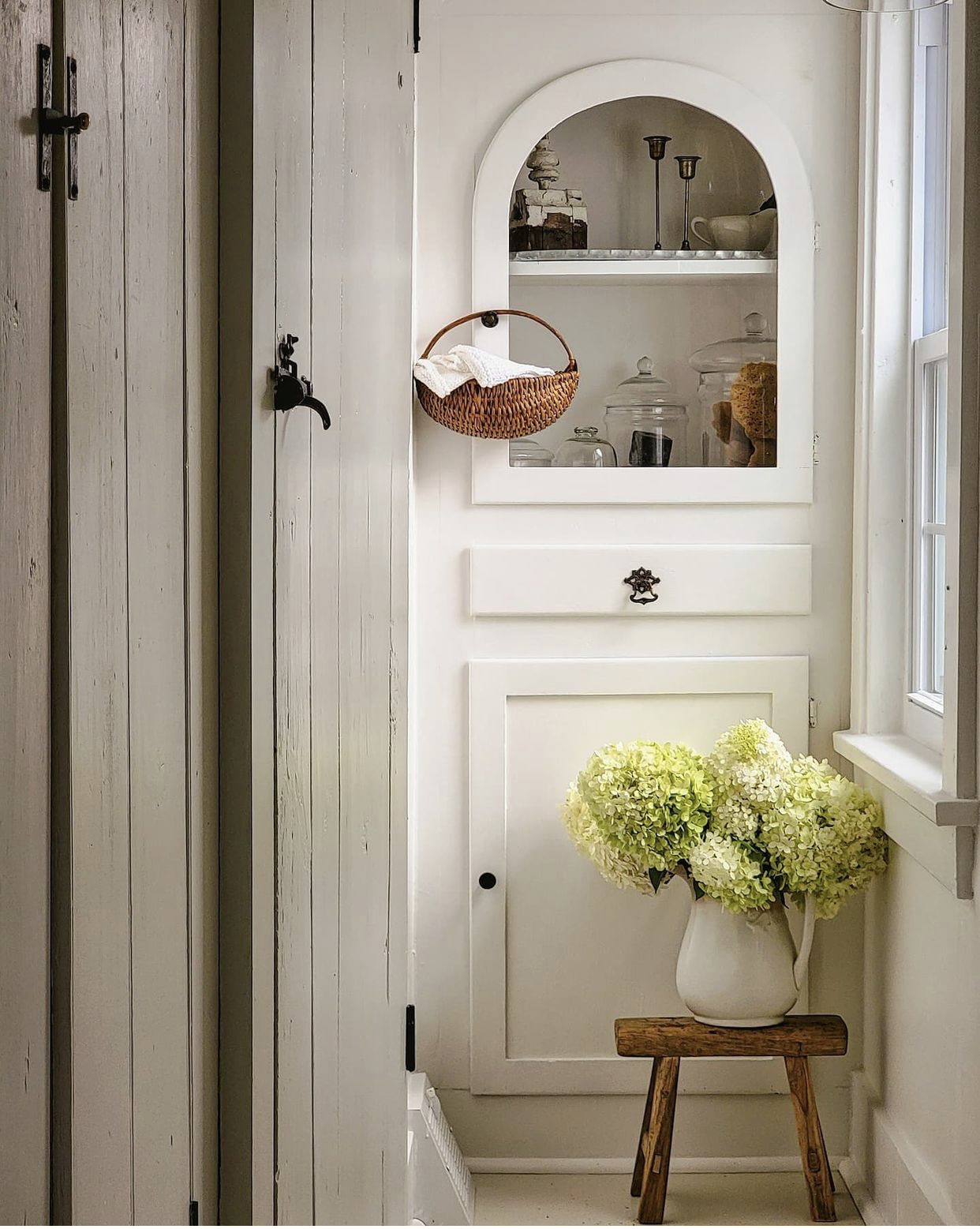 You have to head over to @teahousedesigns to see the before and after of this cozy cabinetry. She explains that in this space prior, she had open shelving, but closing off the storage space makes it look more intentional. I feel that statement so deeply and really enjoy both open and closed storage, but in some spaces, one makes more sense than the other.