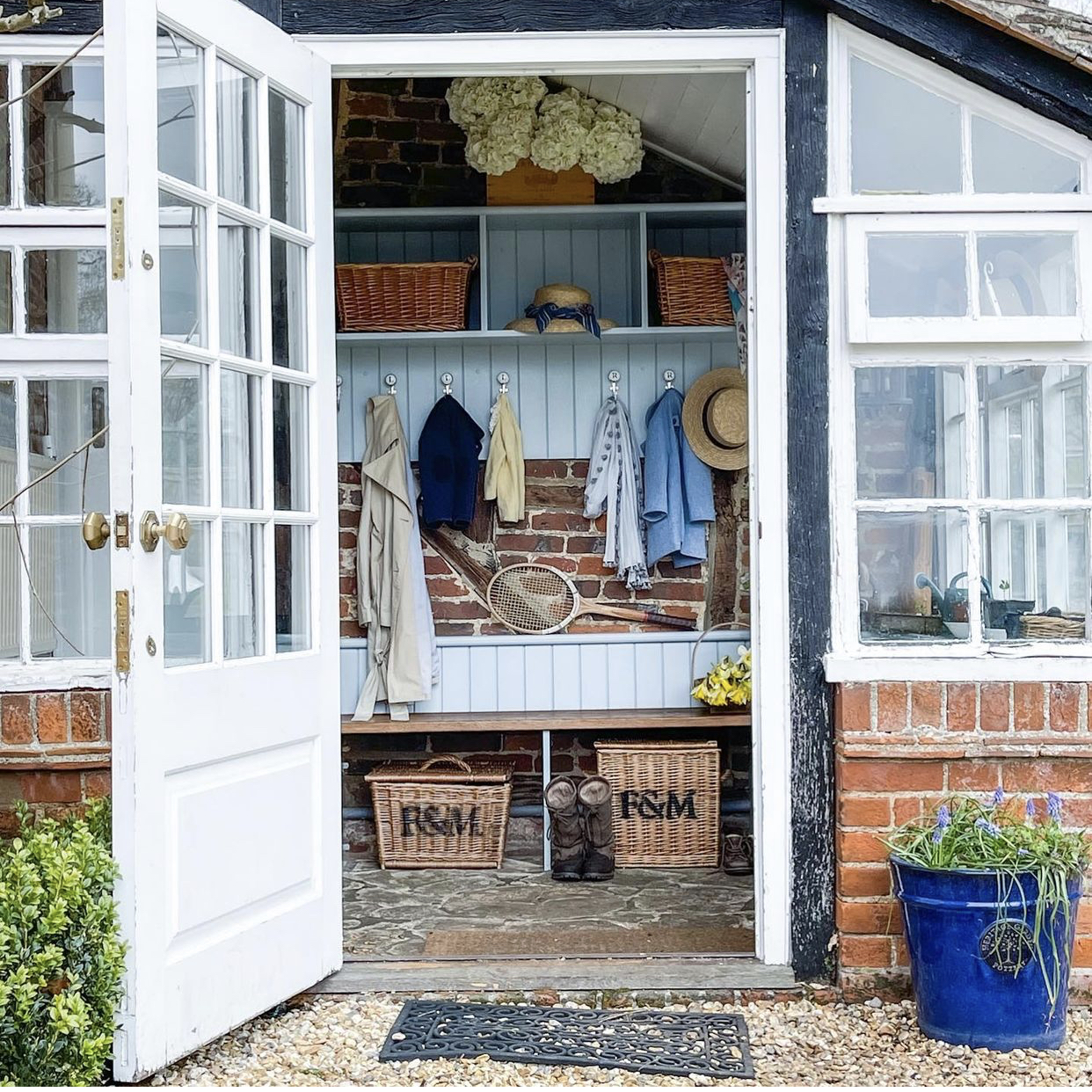 A different view from the previous images is a peek into a mudroom during the season of switching out boots for the season. Can anyone else relate to this? Traveling to a countryside cottage like this one would be such a dream! @MyMulberryHouse…can I come to visit?