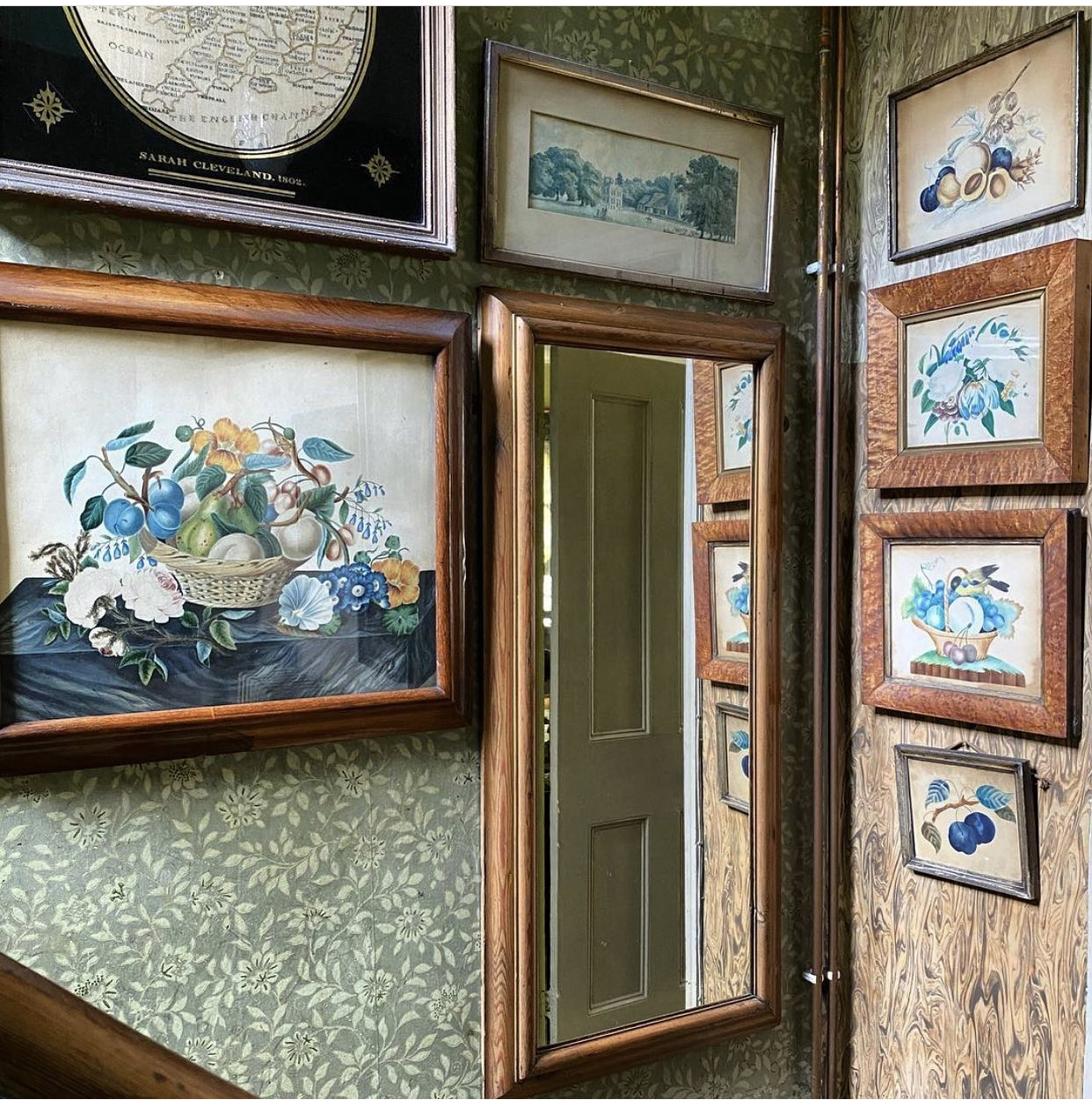 I really enjoy this gathering of blue floral prints in the corner of this stairwell. @velvetart7_ is full of inspiration!