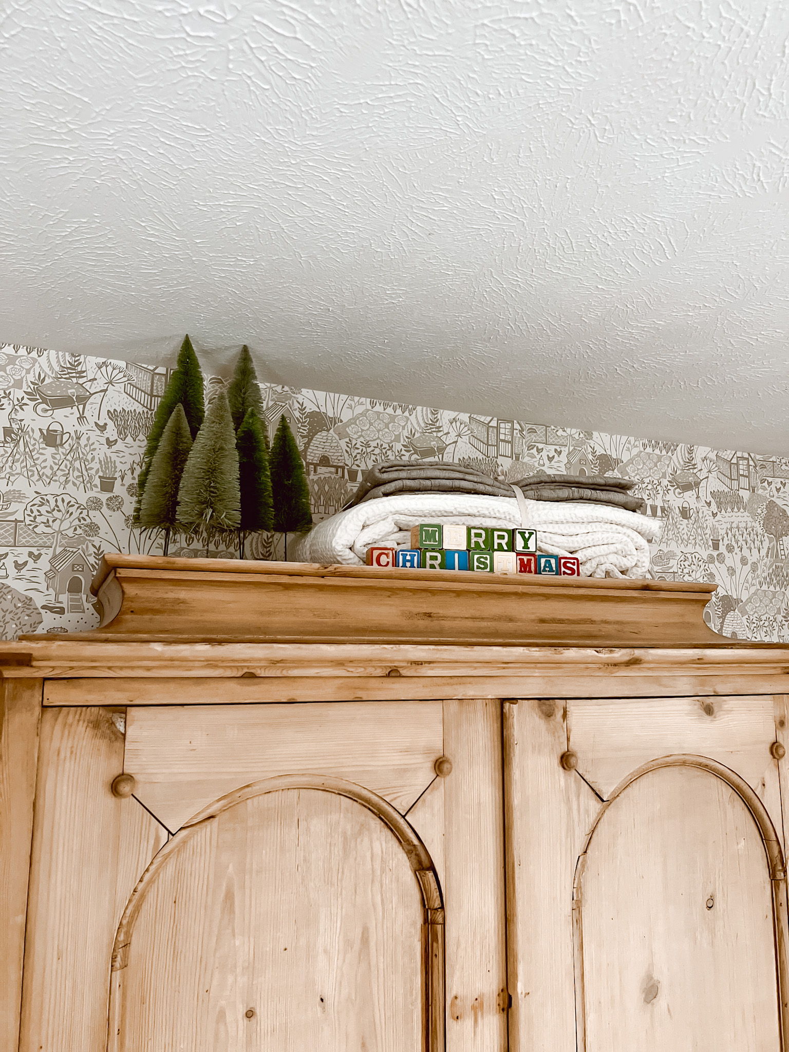 While I like to keep our home really neutral, even during the Holiday Season, I like to add some color into Cope’s room, while still making it true to the rest of our home. At the end of a crazy day, we like to gather in here before bed and play and read. As Cope gets older we wanted to make this room his space for just that. In the last year, we have taken a lot of furniture out of his room to give him room to play and be a growing boy.
