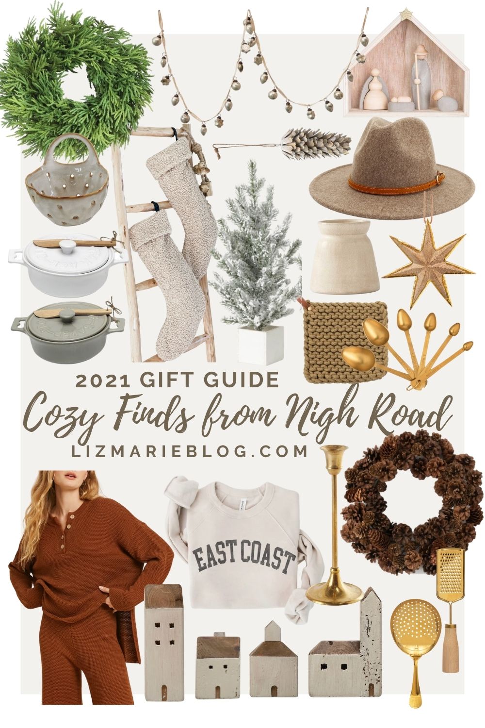 Nigh road has been a recent favorite for my cozy wardrobe & cozy home decor. I shard them a few weeks ago, but since then I’ve styled a few of the pieces in my home. I had these shelves in our library that I styled a Christmas village & some stoneware pieces from Nigh Road, but here are some of my other favorite picks from them as well…