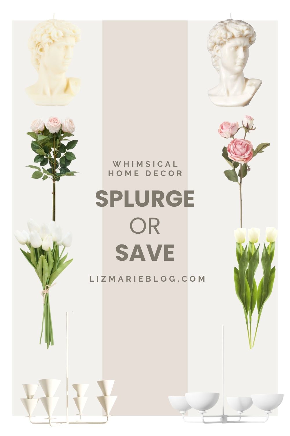 Typically I like to keep our home at with cozy utilitarian decor style, but for this week’s splurge or save blog post, I decided to find some whimsical and feminine home decor dupes to share with you all! Check out this week’s dupes here [HERE].
