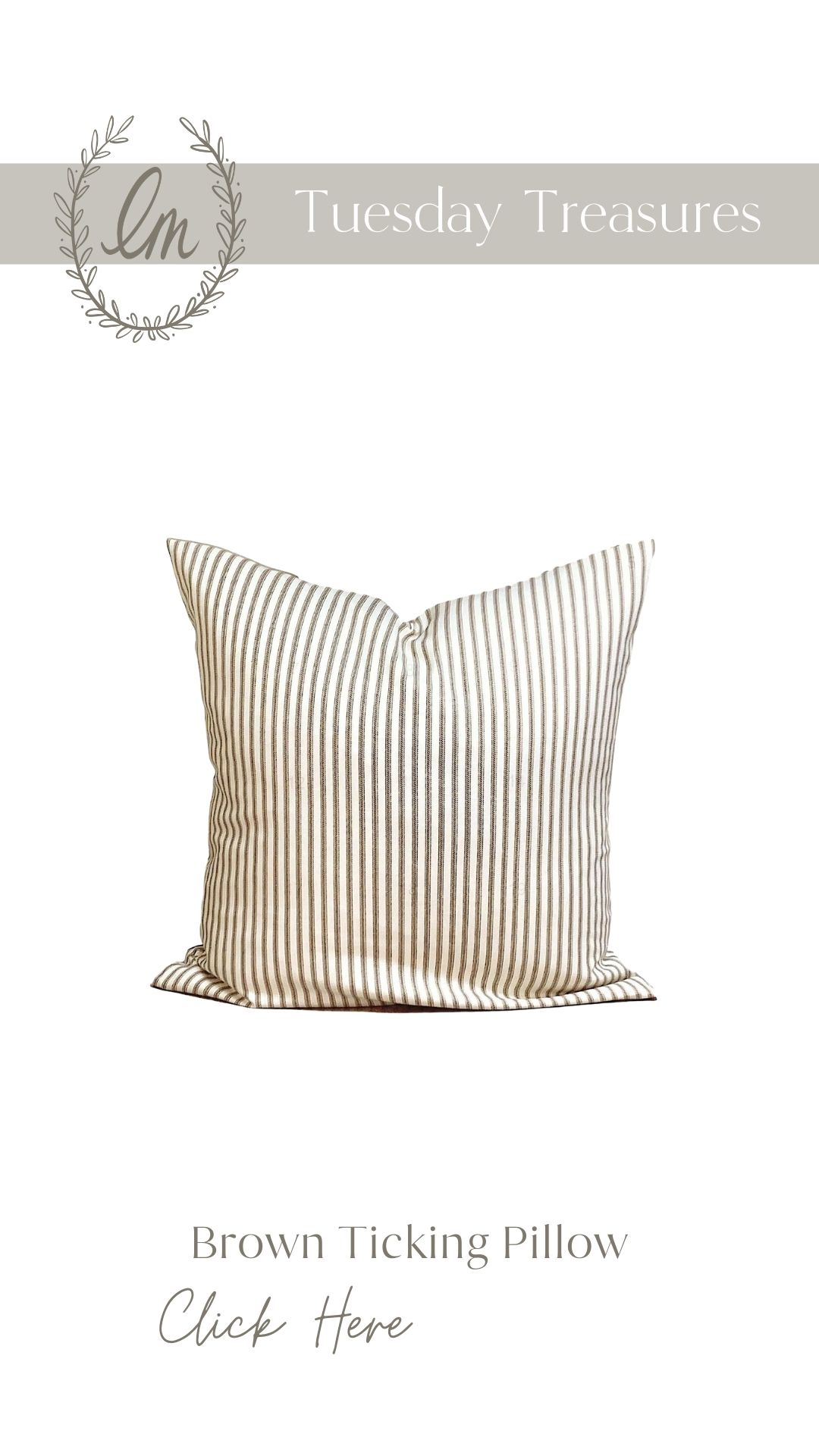 I truly cannot have enough ticking stripe fabrics in our home. I like incorporating them into our kitchen through tea towels and tablecloths and also in our living room with pillows like this one. Shop this ticking pillow by clicking the image below: