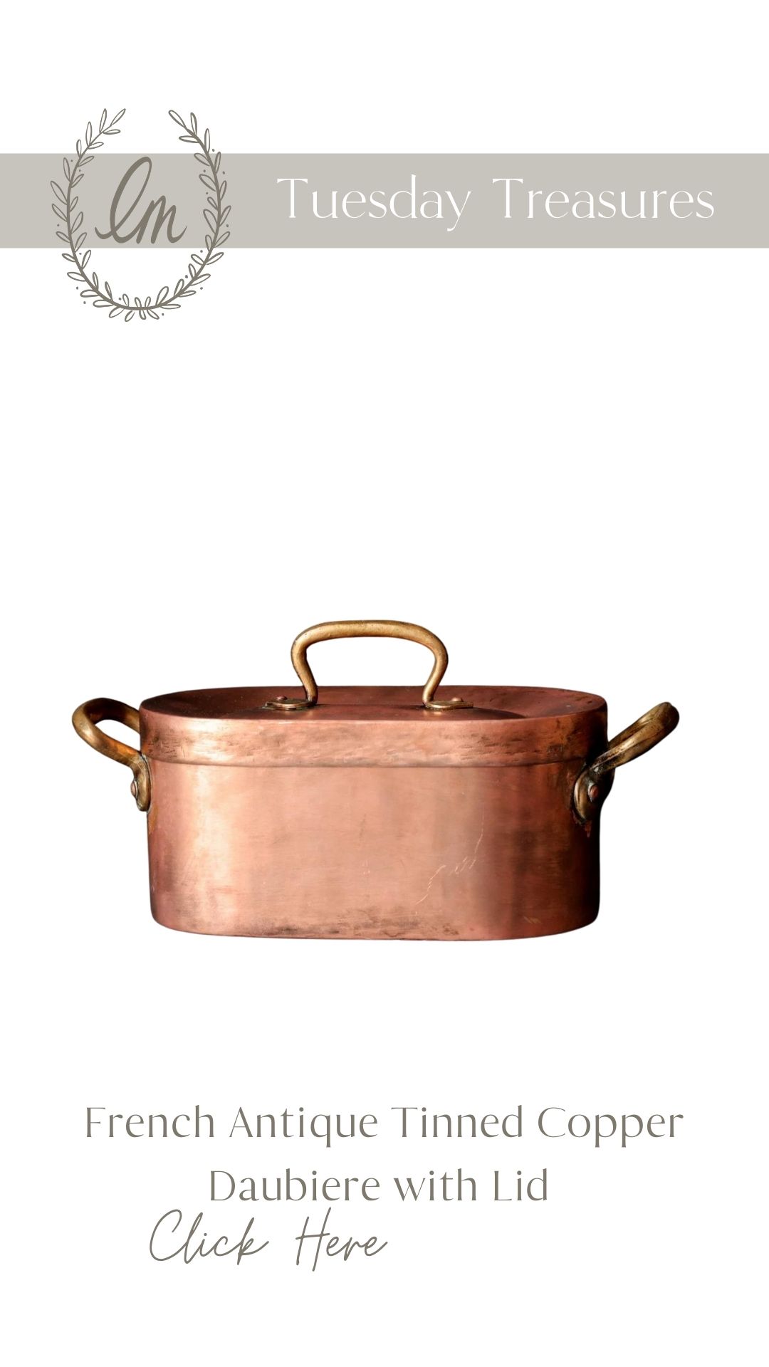Copper and brass items are one of my favorite ways to incorporate color in our home. I love this copper daubiere…wouldn’t it look so nice sitting on a stove? Shop this one by clicking the image below: