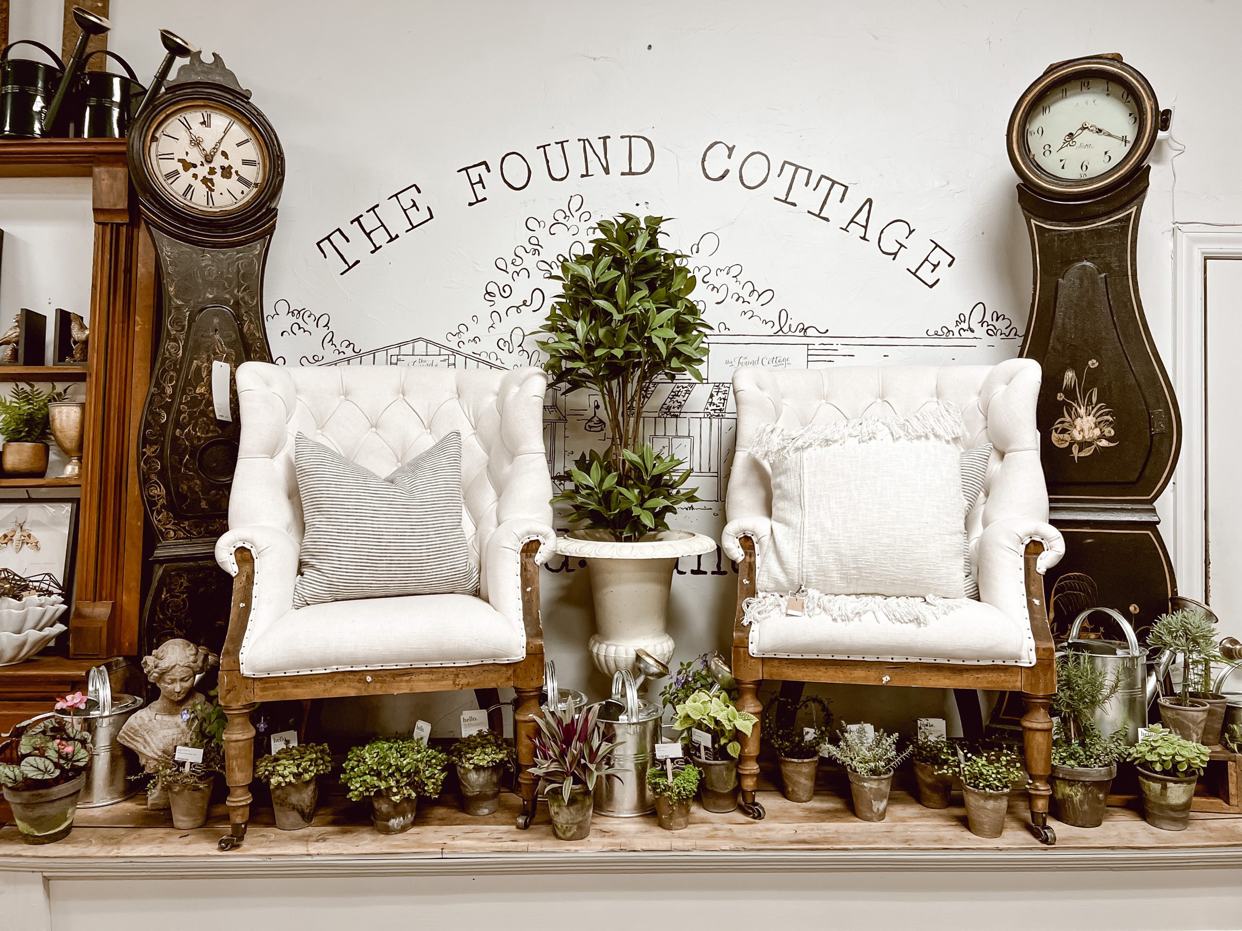 Key the exhale! The White & Faded Launch at The Found Cottage went off with a massive bang! If you don’t know what I am talking about, I was so honored to collaborate with a hand-selected collection from White & Faded to be sold first locally at The Found Cottage and then online starting this week! You can read more about the White & Faded Collab [HERE]. We pulled the entire Found Cottage team together to curate some spaces to help display these beautiful one of a kind European treasures, some dating back to the 1600’s. Let’s take a look at how everything came together.