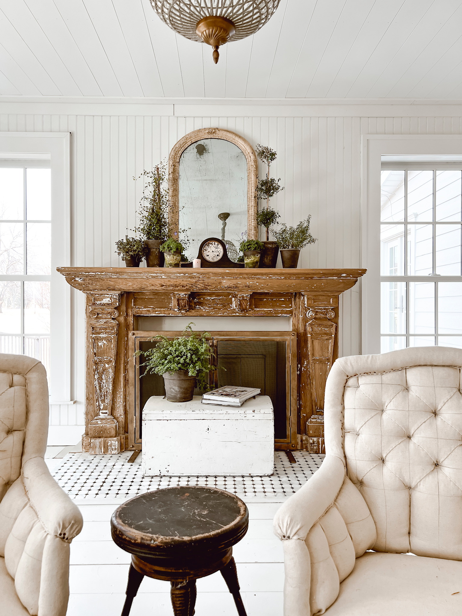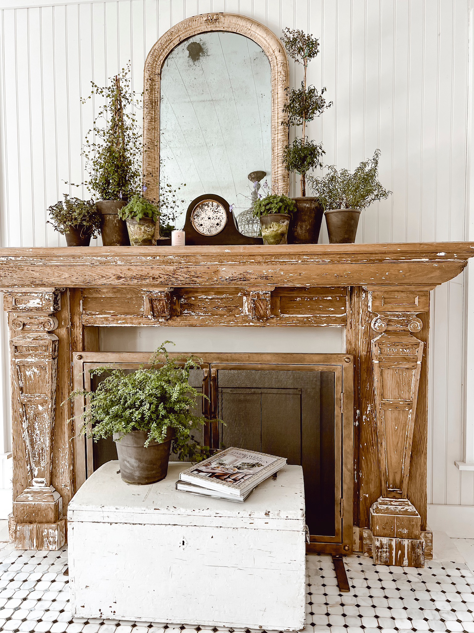I cannot tell you the randomness I experienced today. I purchased some spring greens from my store the other day just to start seeing and feeling a little more life inside our home. This time of year I live for fresh greenery. I had to change up my mantel for another project I’m working on and thought this would be the perfect time to offer a quick cozy tip. If you have a space that is in transition, a small stack of plants is a great way to make the space look decorated with minimal effort to style and ease for take down. Here is how the quick mantel turned out over here…
