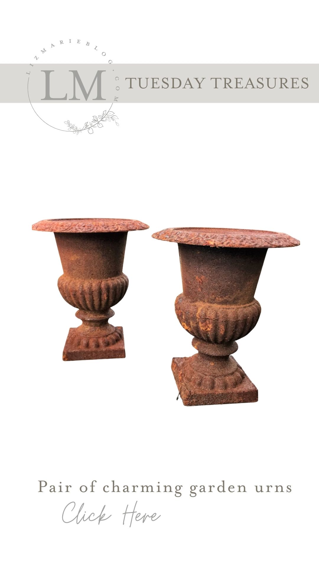 It’s almost planting season here in Michigan! I am so excited to pull out our urns and get planting. These antique urns have such pretty aging on them…AND they come as a set!