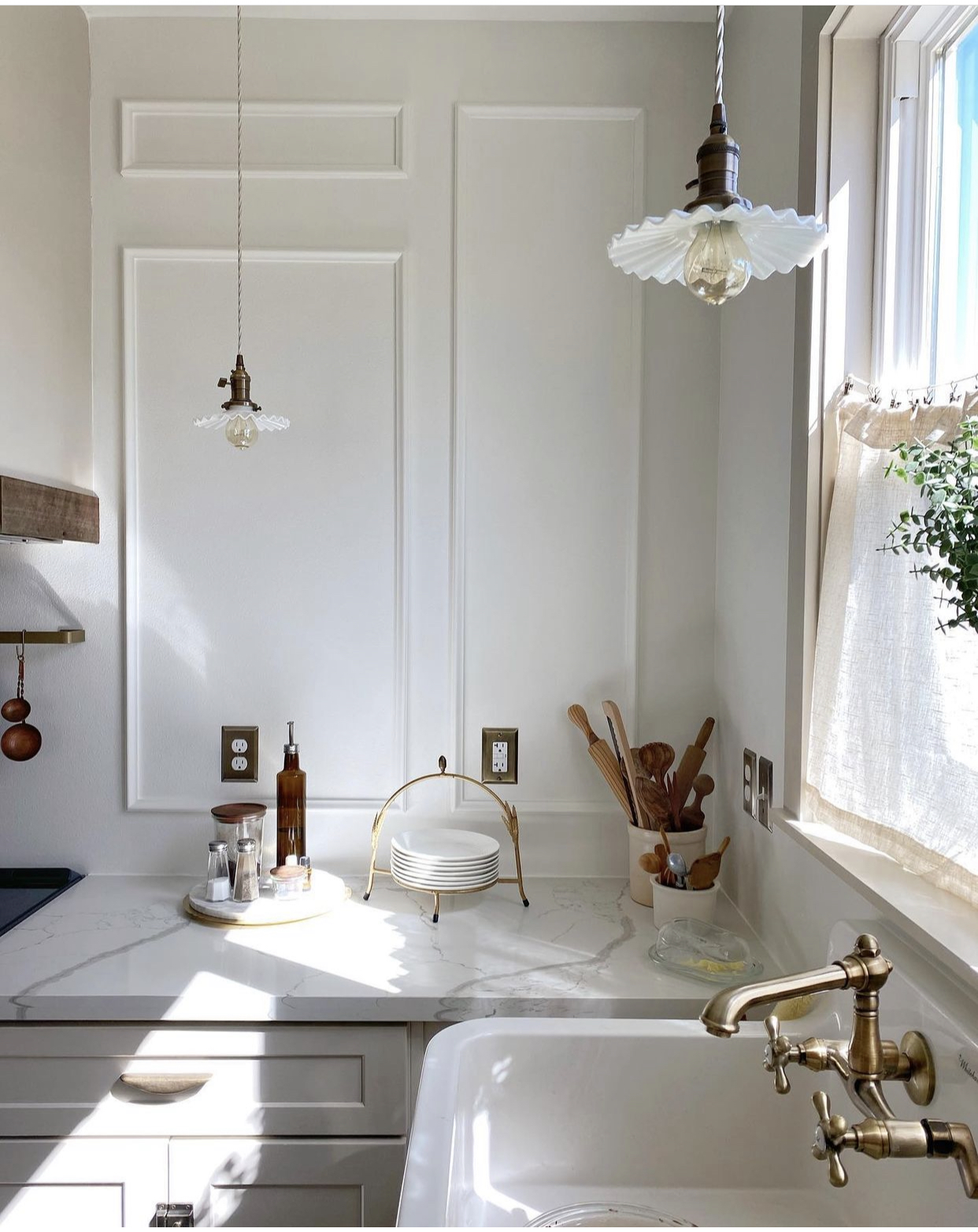 I’ve seen petticoat shades in many different rooms and spaces. However, the most common space to house them it seems is the kitchen. @zioandsons shares this corner with a unique brass petticoat shade and I really enjoy the pop of color that it is giving.
