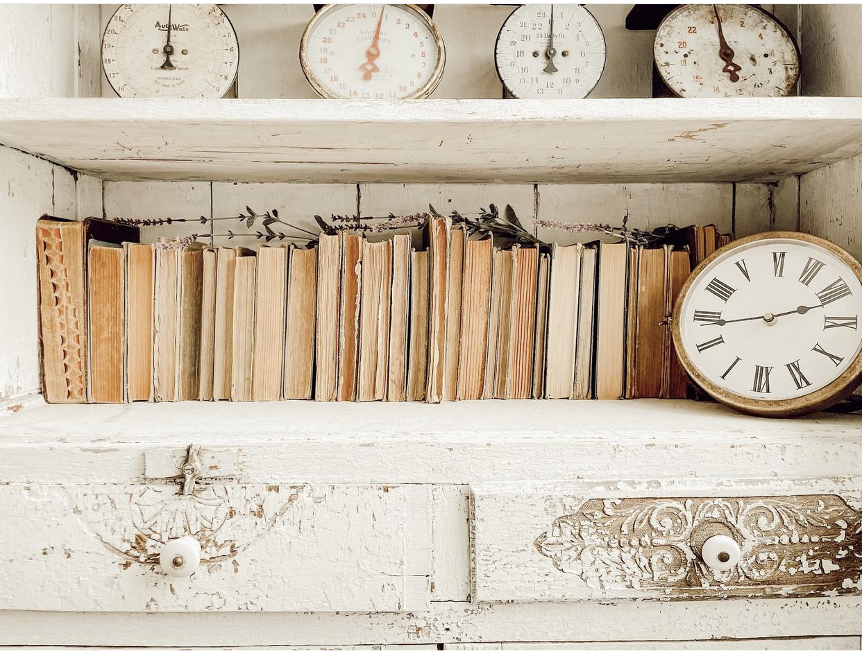 @boxwoodfarmsllc shared this image of her new brass clock on a super cozy bookshelf! I love her collection of antique books and scales and the clock was such a great addition!