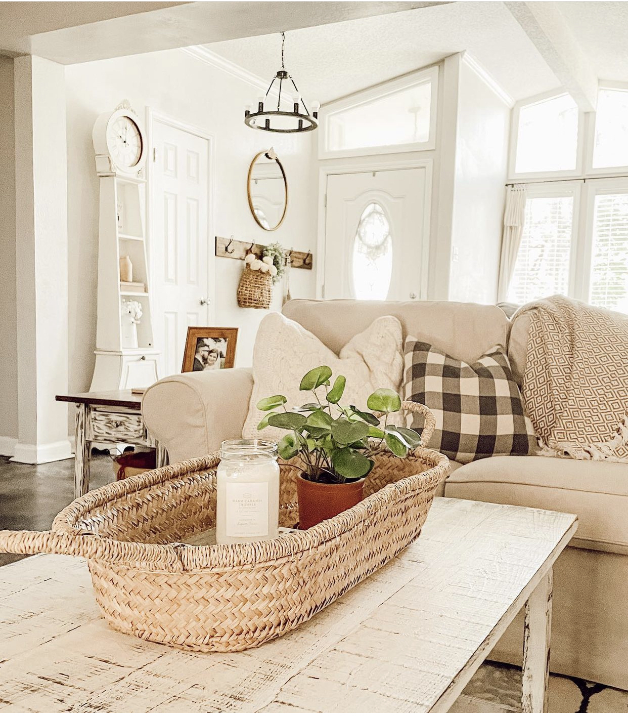 This cozy space shared by @teachmehowtodecorate is so pretty! I love looking at all of her cozy decor but at the forefront of it all is the woven seagrass basket! This basket is so great for coffee tables because it gathers decor while being the perfect size without taking over the entire table.