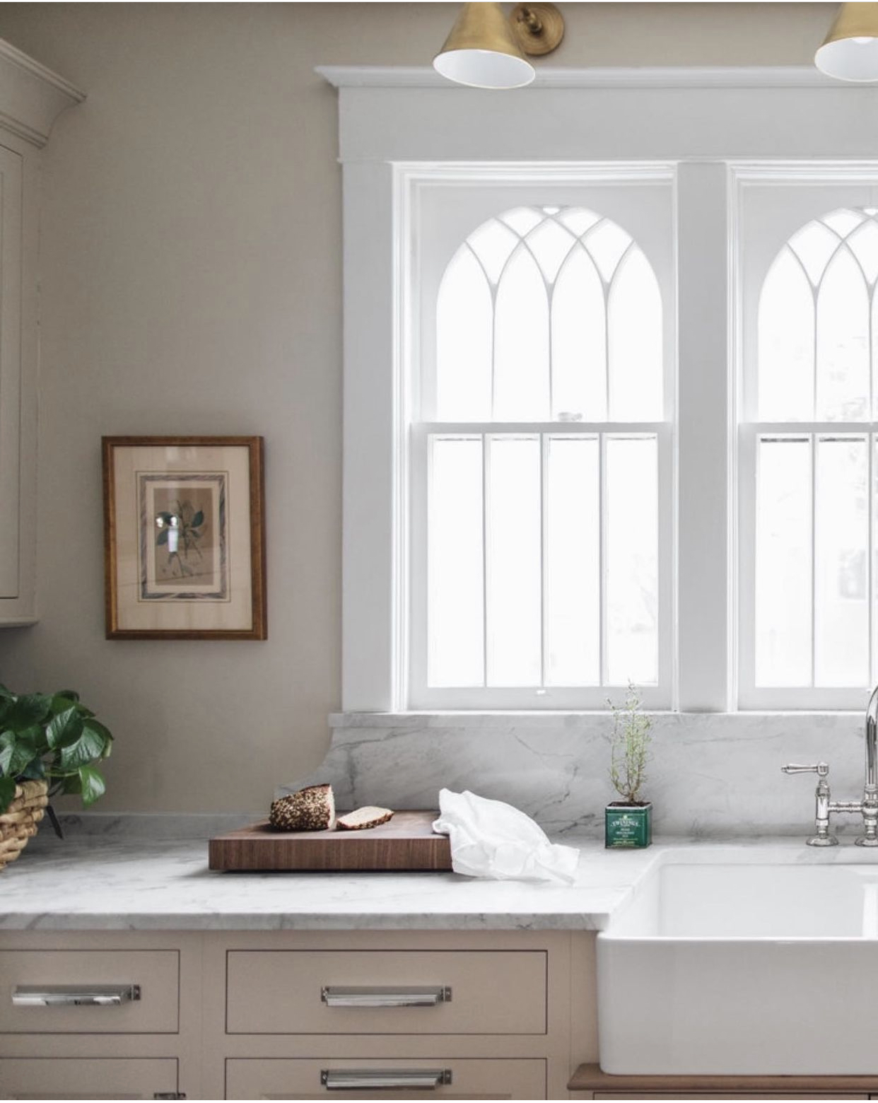 This photo of a cozy kitchen nook shared by @peppertreeliving @jaimeeroseinteriors features a really great large arched window. I love the idea of an arched window in this space and trying to picture a classic square window here just doesn’t seem right!