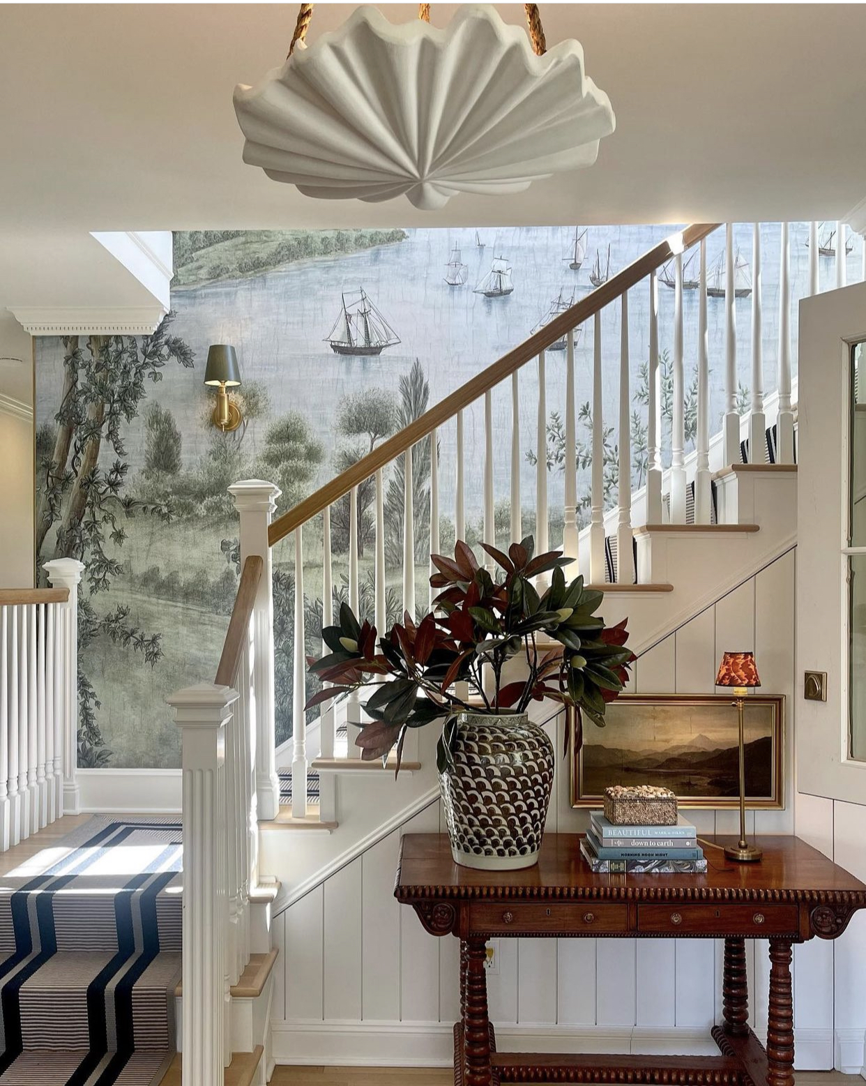 I love it when the design details of a space are so carefully thought out. You can definitely tell that this space, shared by @m_m_interior_design. The sconces match the wallpaper and the ceiling pendant also has a nautical feel! Definitely giving me coastal vibes!