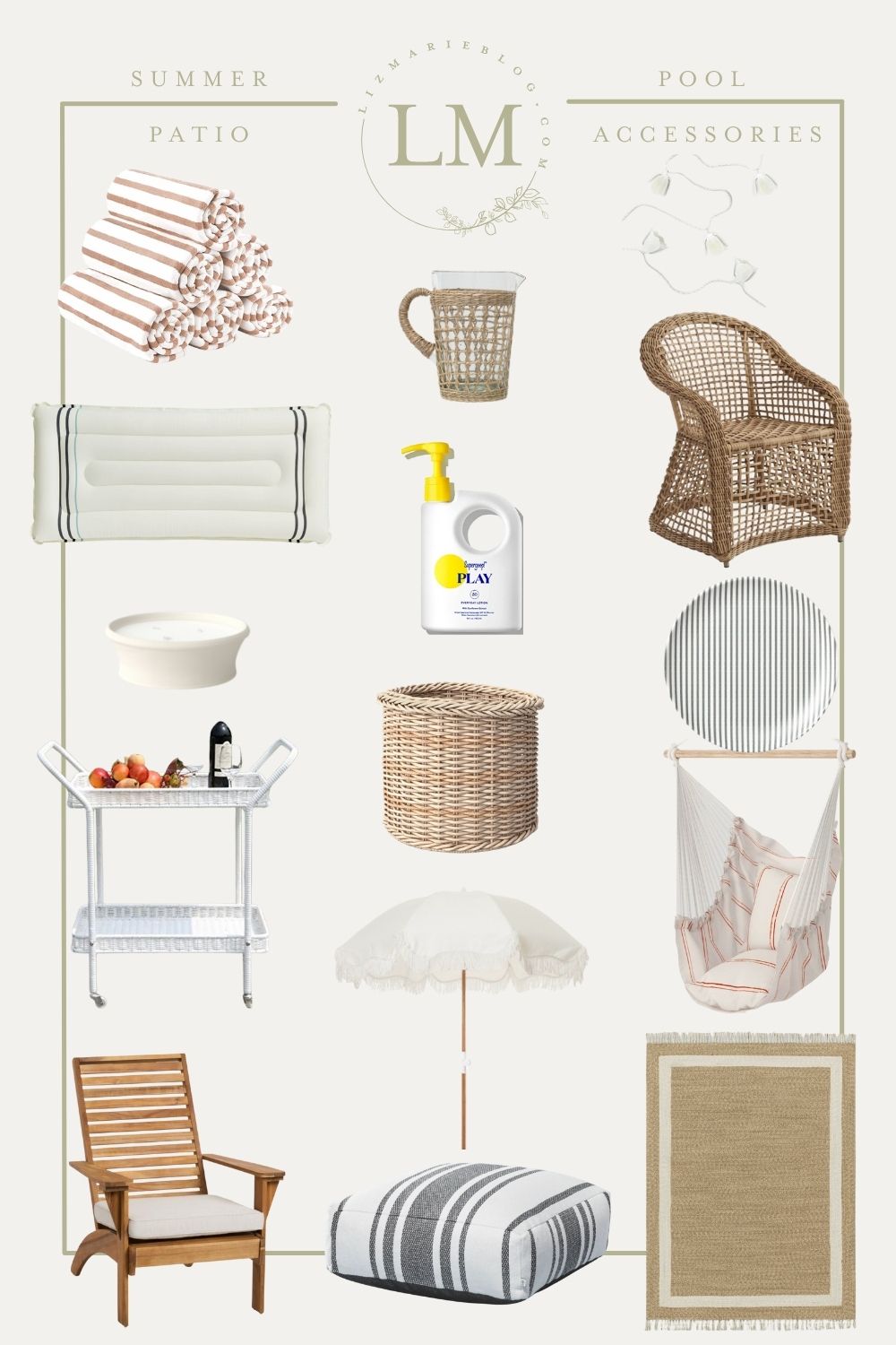 Summer is the season that warms my skin and nurtures my soul. I am so excited for the warm weather season to start and create memories in our pool and patio area. Recently I’ve had so many of you reach out inquiring about affordable pool and patio furniture and accessories. I thought I would round up some of my favorites and share them with you now before Summer officially starts. The accessories in this blog post here [HERE] for both pool owners and just those looking for patio furniture.