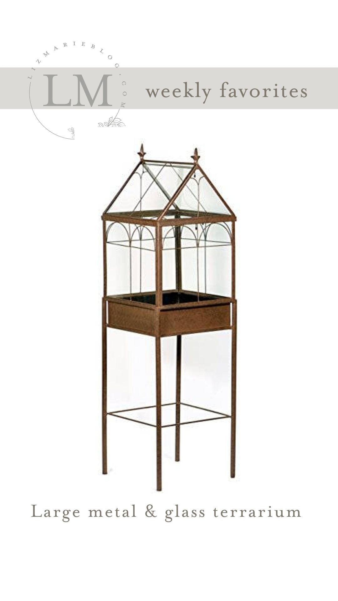 Welcome-Welcome! This is my first post of Liz Marie’s Weekly Favorites. A curated list of items that you the readers loved this past week, all from this cozy little blog of mine. The mission statement for my blog has always been to inspire design through projects here within my home as well as sharing trends and products I am currently loving. I always shared these in stories on Instagram, but I wanted them to have a more permanent space, so now they will live on the blog so you don’t feel pressured to show up on socials if you don’t feel like it. From the large list, I wanted to take a moment to share my weekly favorites selected by you and your fellow Liz Marie Blog readers. This week its all bout a Large Terrarium, Women’s Strap Sandals, a Fresh Market Bag, A Trestle Dining Table, my small Jute Rug, a Pearl Monogram Bracelet, and a Market Tote Handbag. As I love inspiring you, let’s team up and hopefully inspire others with all of our favorite products over the week.