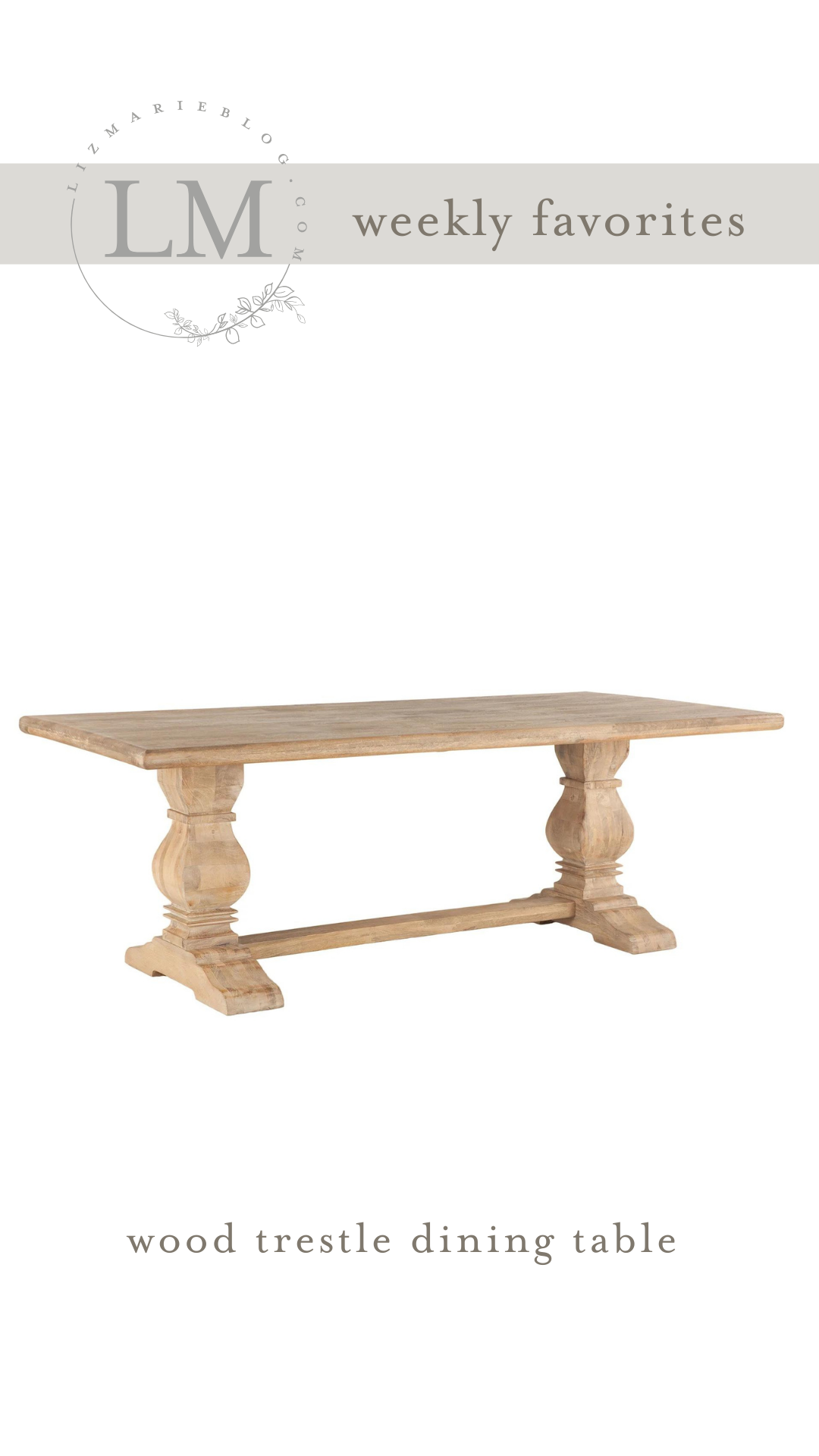Katharine Mango Solid Wood Trestle Dining Table looks just like our little greenhouse bench we DIY’d to make it look old and lighter. I love this style and the wood color on this piece will fit any style.
