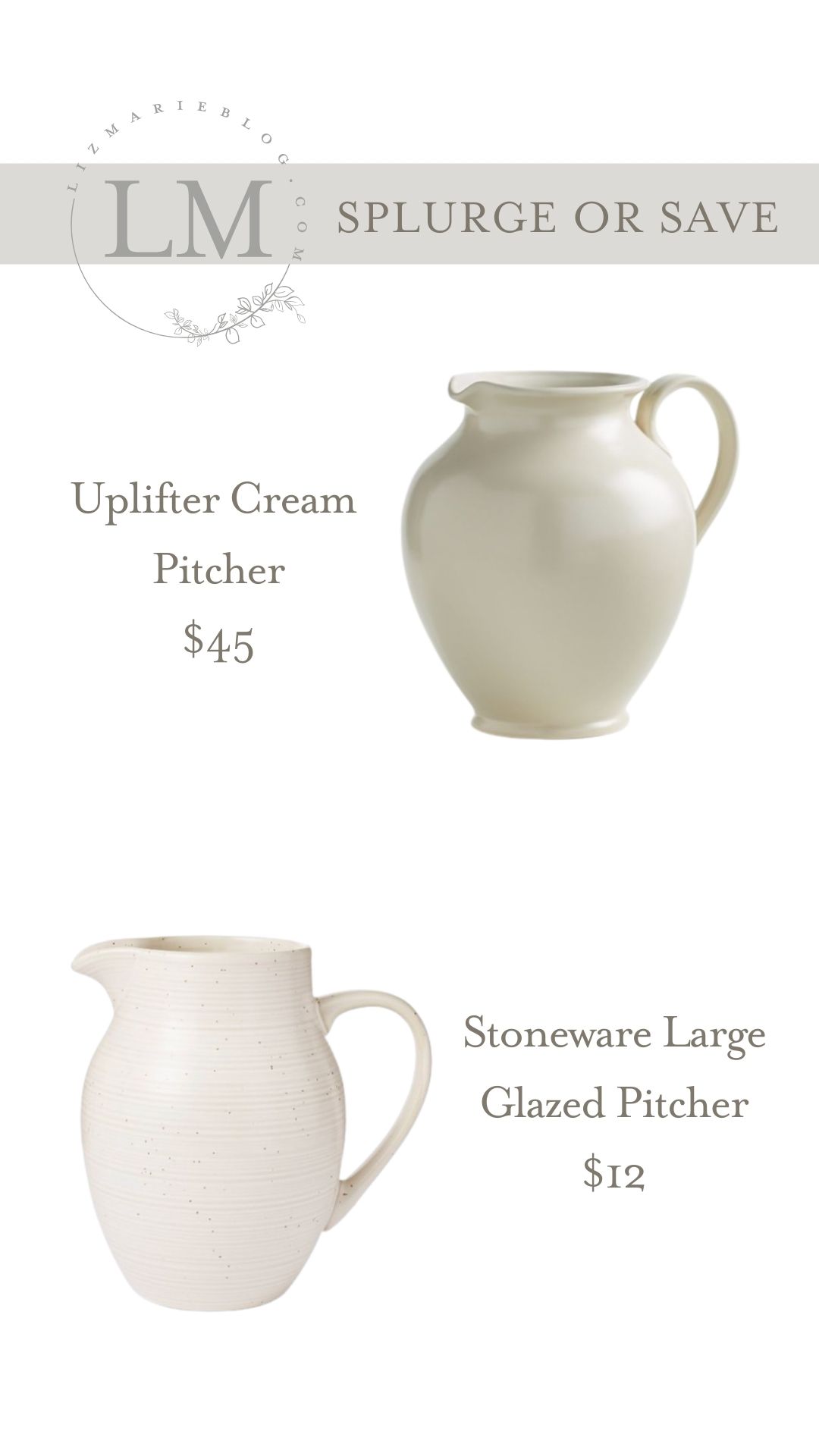 A large pitcher like the two above would look great both indoors and outdoors. I love filling my pitchers like this with greenery and foliage. Shop both pitchers above by clicking the images below: