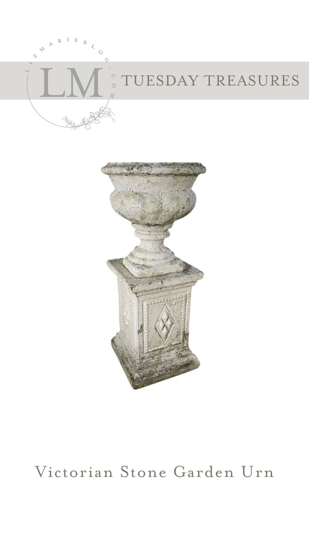 Garden Urns are some of my favorite antique pieces to add to our garden and patio spaces. This stone one is aging quite beautifully. Shop this urn above by clicking the image below: