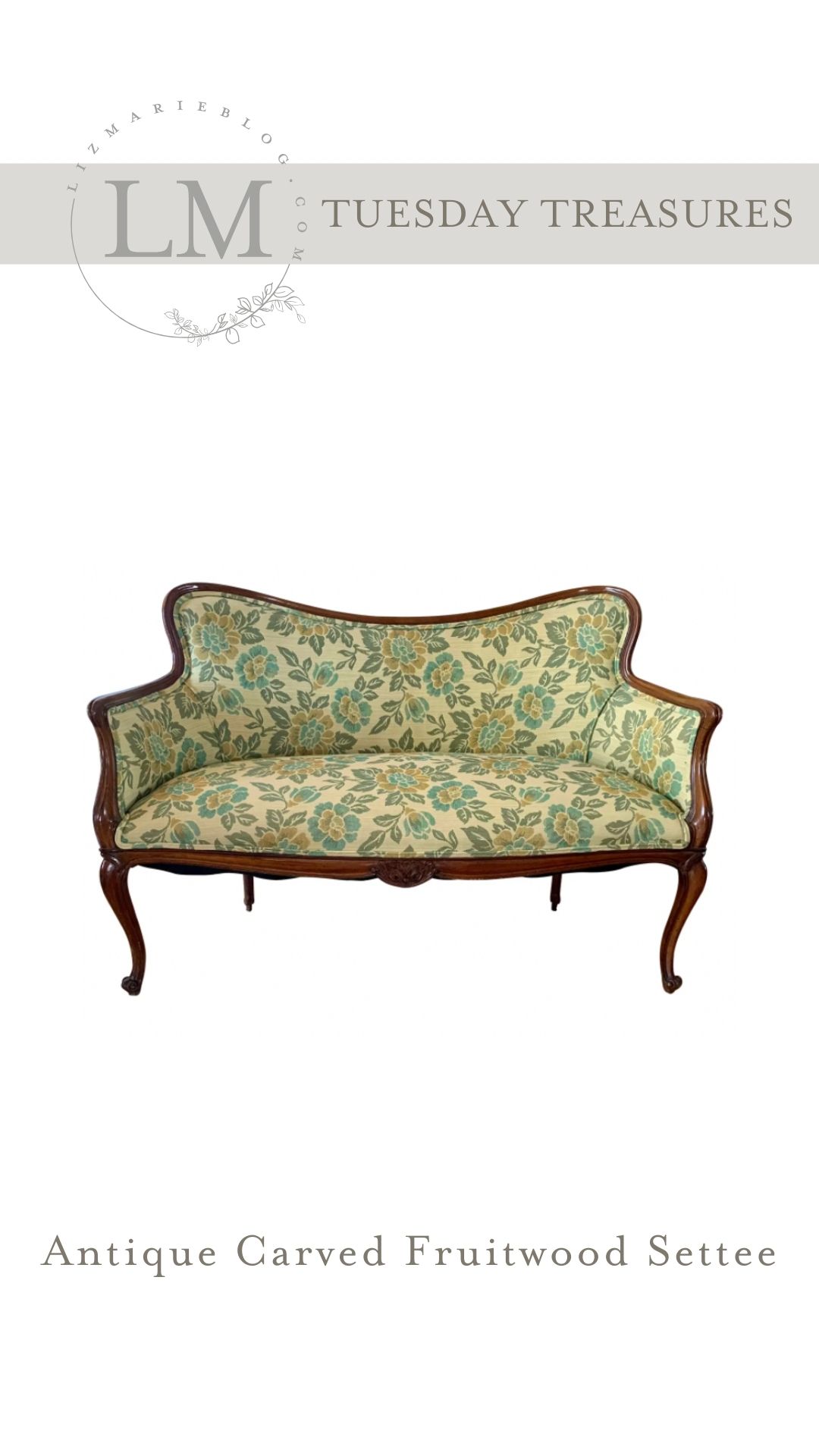This fruitwood settee is the perfect amount of color to add to a space. I love the carved wood texture mixed with the fun vintage print. Shop this settee by clicking the image below: