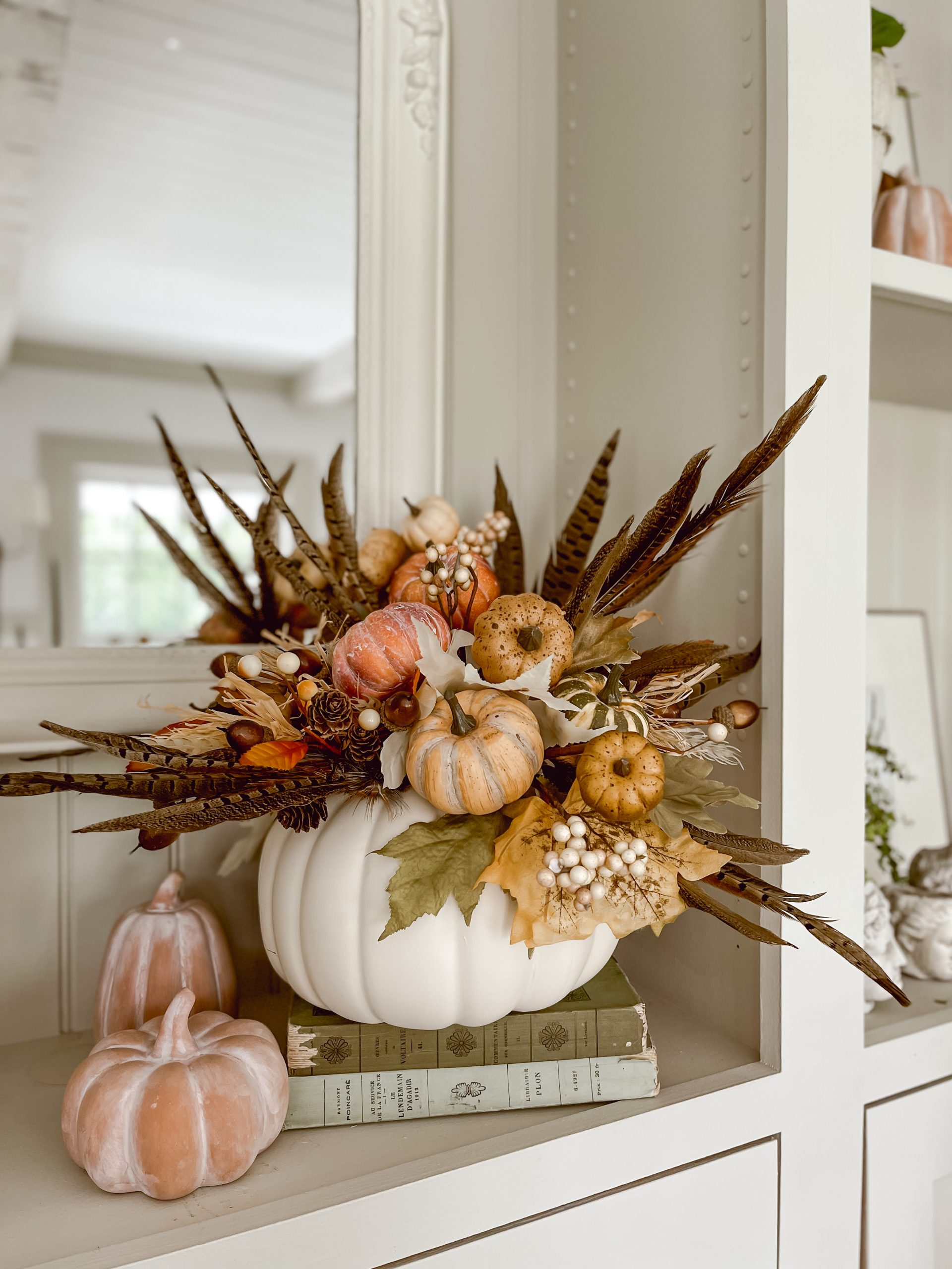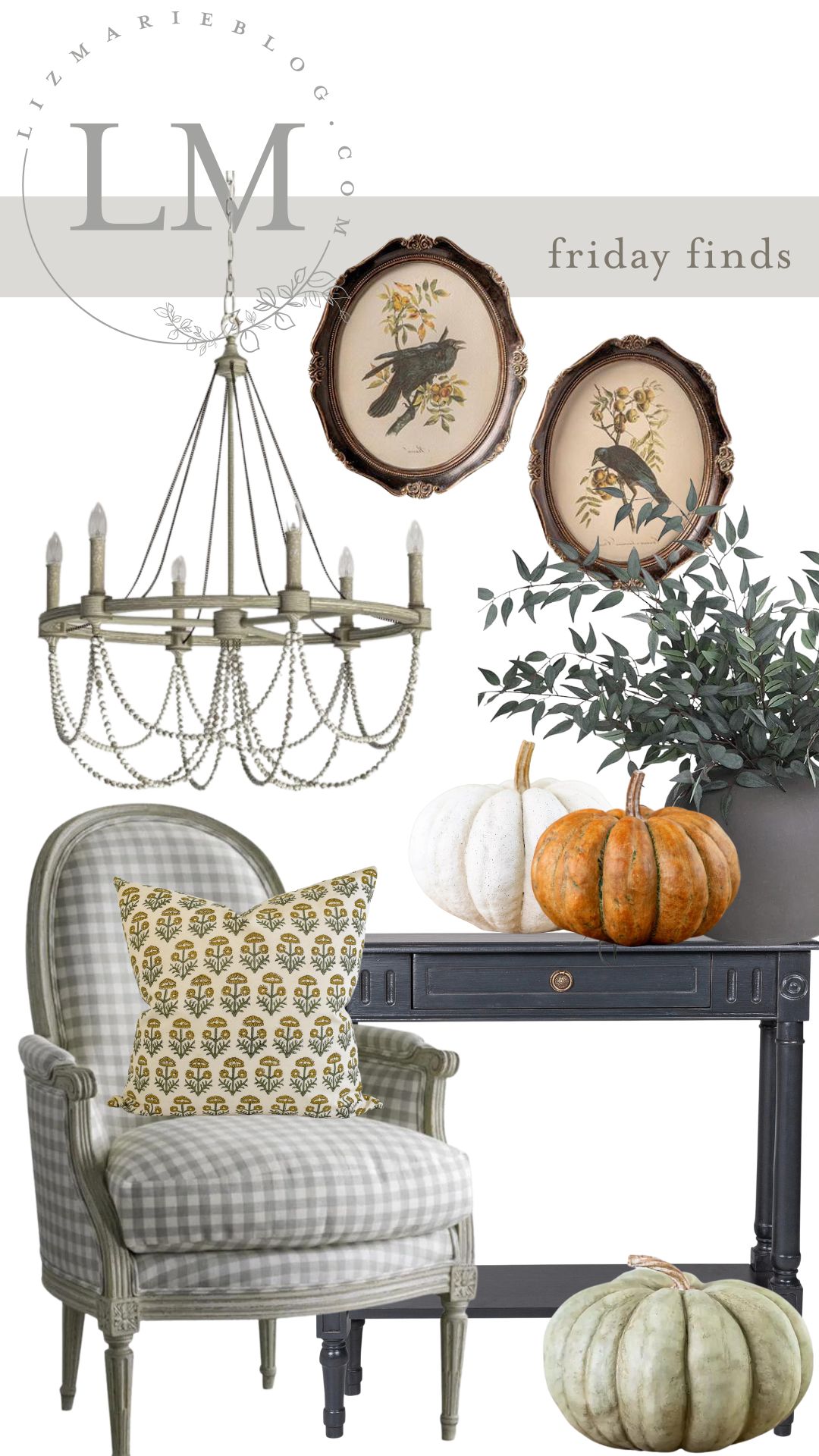 Now of course my Friday Finds. Not going to lie, I included a chair I could only ever dream of with that price tag, BUT that’s kind the point sometimes of what I share here. I’m not saying it’s affordable when I share everything & I’m not saying it’s obtainable to everyone, I am saying that it’s inspiring. We don’t need to buy all the things, some things we can just be inspired by while we wait for similar things or something else that inspires us & fits in our budgets & spaces. That little console table is SO THIN & I thought it was unique for those that don’t have a large entryway. It also comes in three colors. These pumpkins are all on sale & look so realistic! I think I may grab a few of those. The light, pillow, & artwork are such a great way to add a vintage cozy vibe to a space with new items that look old and found. You can shop all of these items below & more below by clicking the photos: