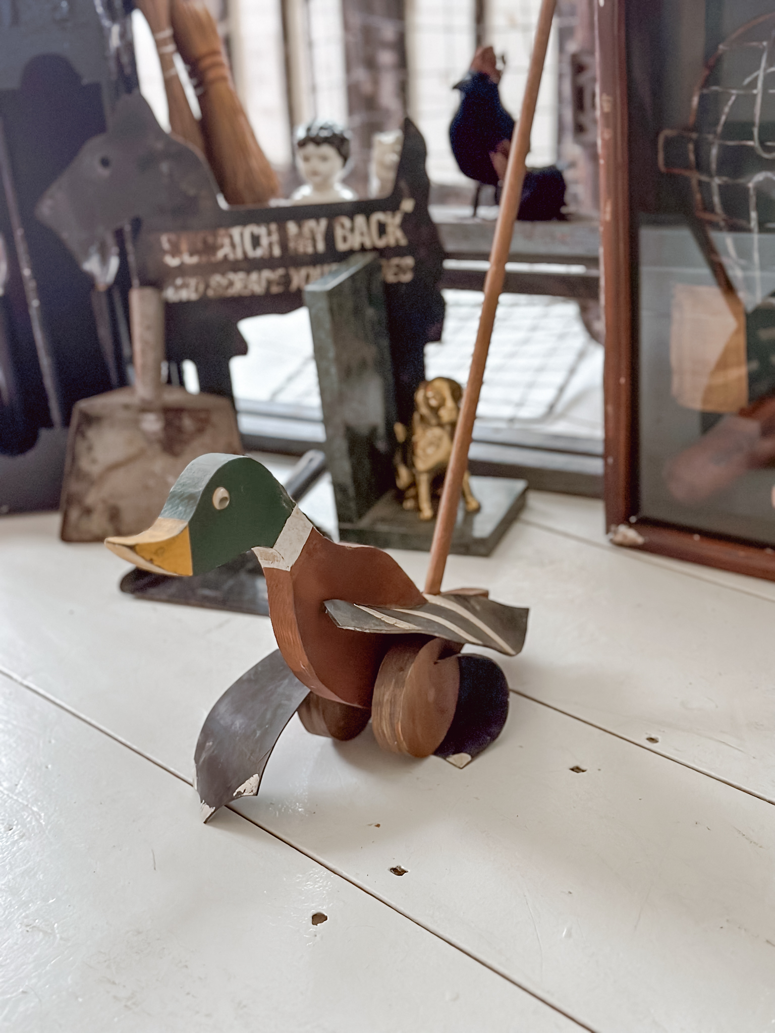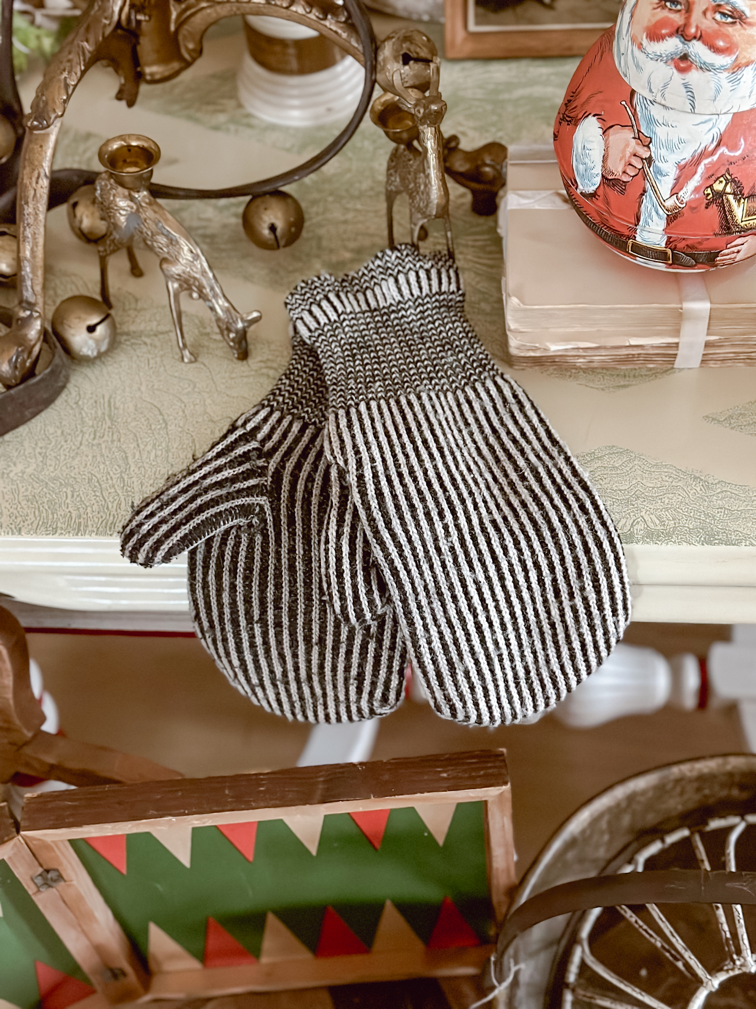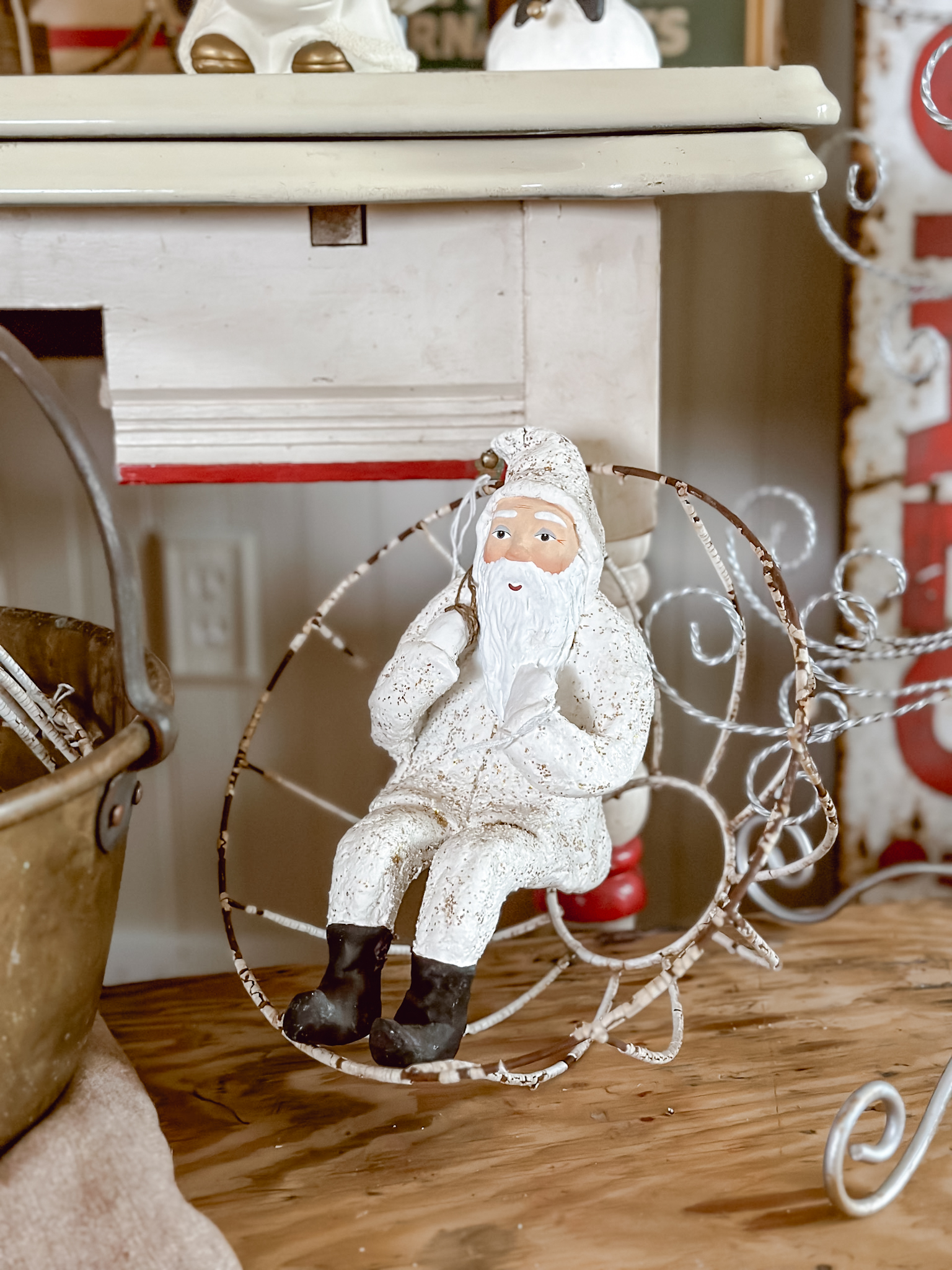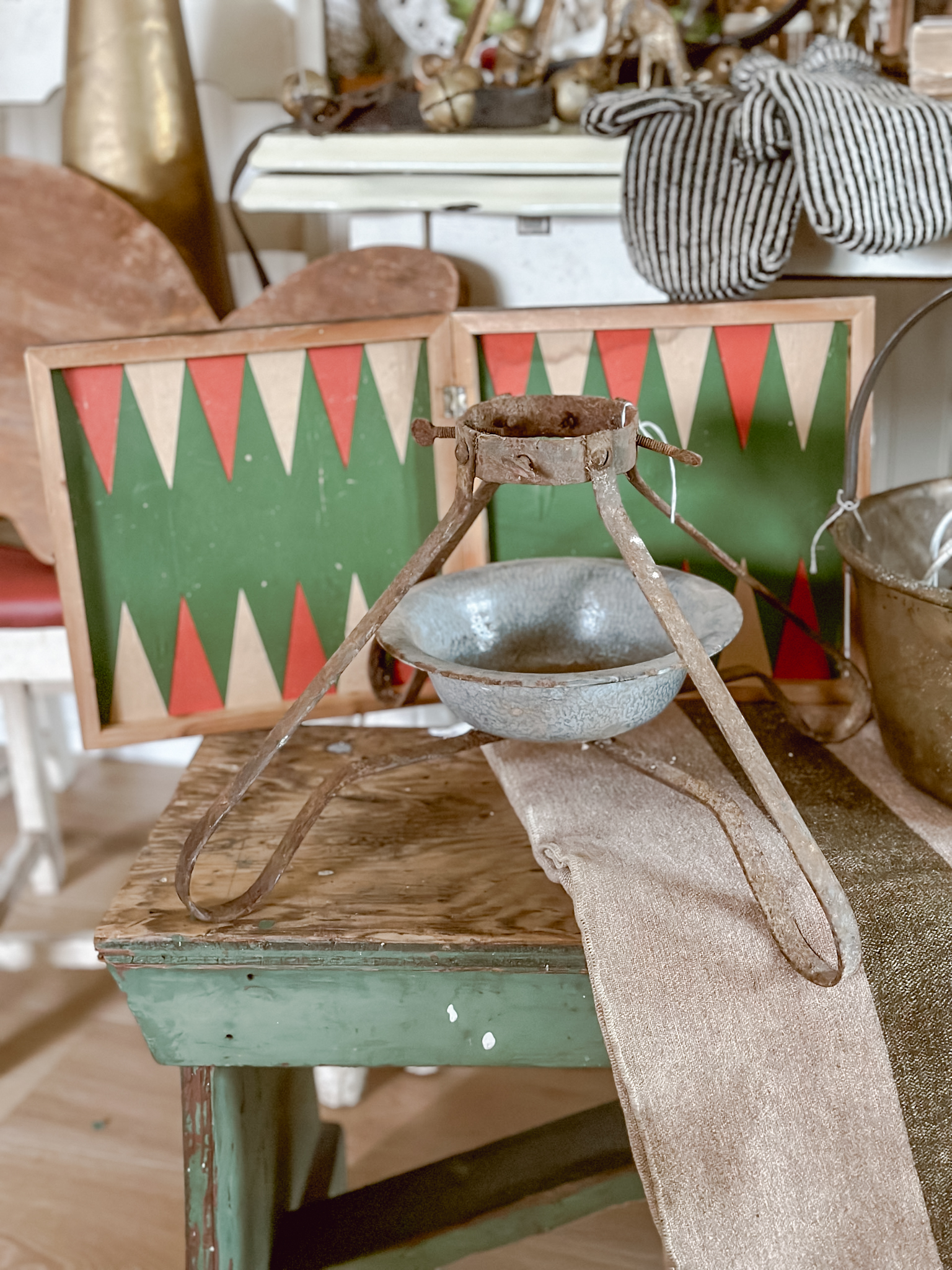 Decorating with antiques for Christmas decor is one of my favorite ways to decorate. It’s a great way to showcase how a few color ways along with some earthy tones and textures can really give off a large Christmas vibe, without being overly whimsical. Using game boards and signs to give off the pops of Christmas reds and greens along with more Christmas forward items like vintage Santa dolls, faux Christmas trees, or even some ornaments, are great ways to give the vintage and subtle Christmas vibe without being too Hallmark. I like decorate with “implied” Christmas decor… it doesn’t have to say Christmas to be Christmas decor.