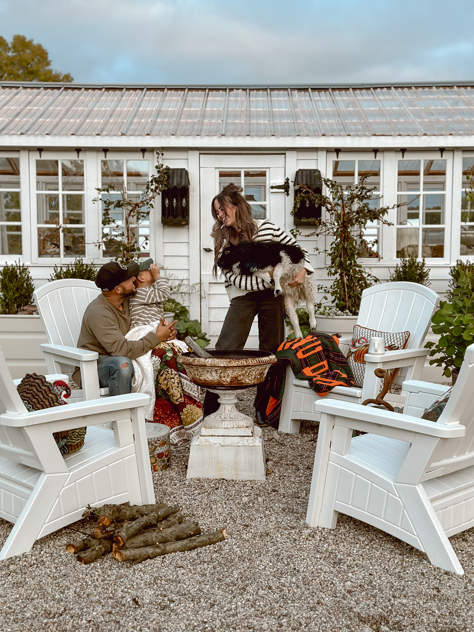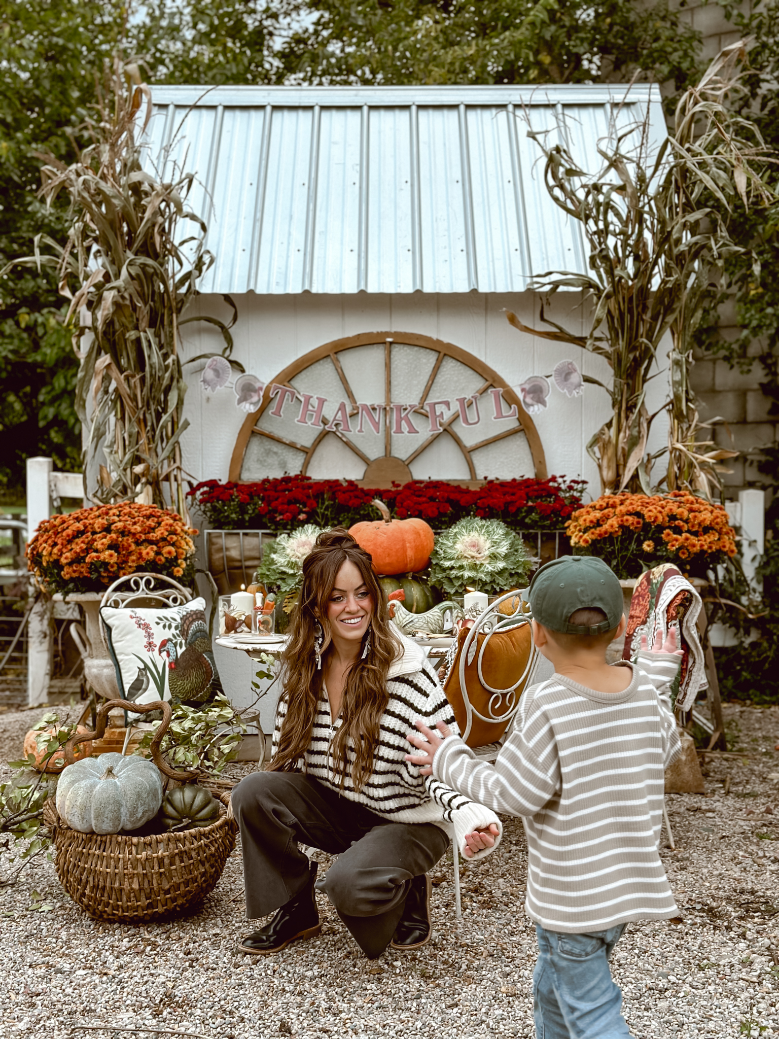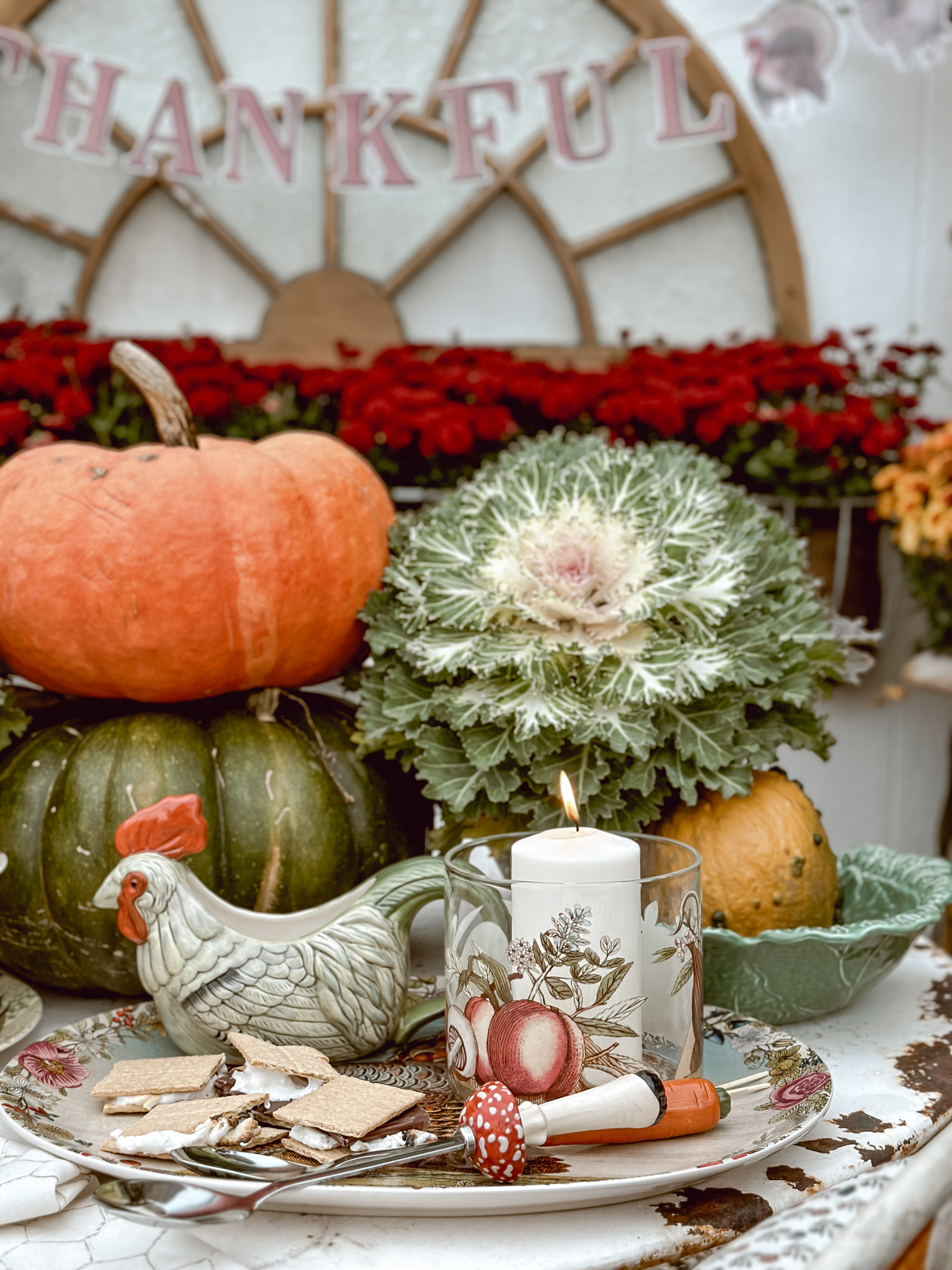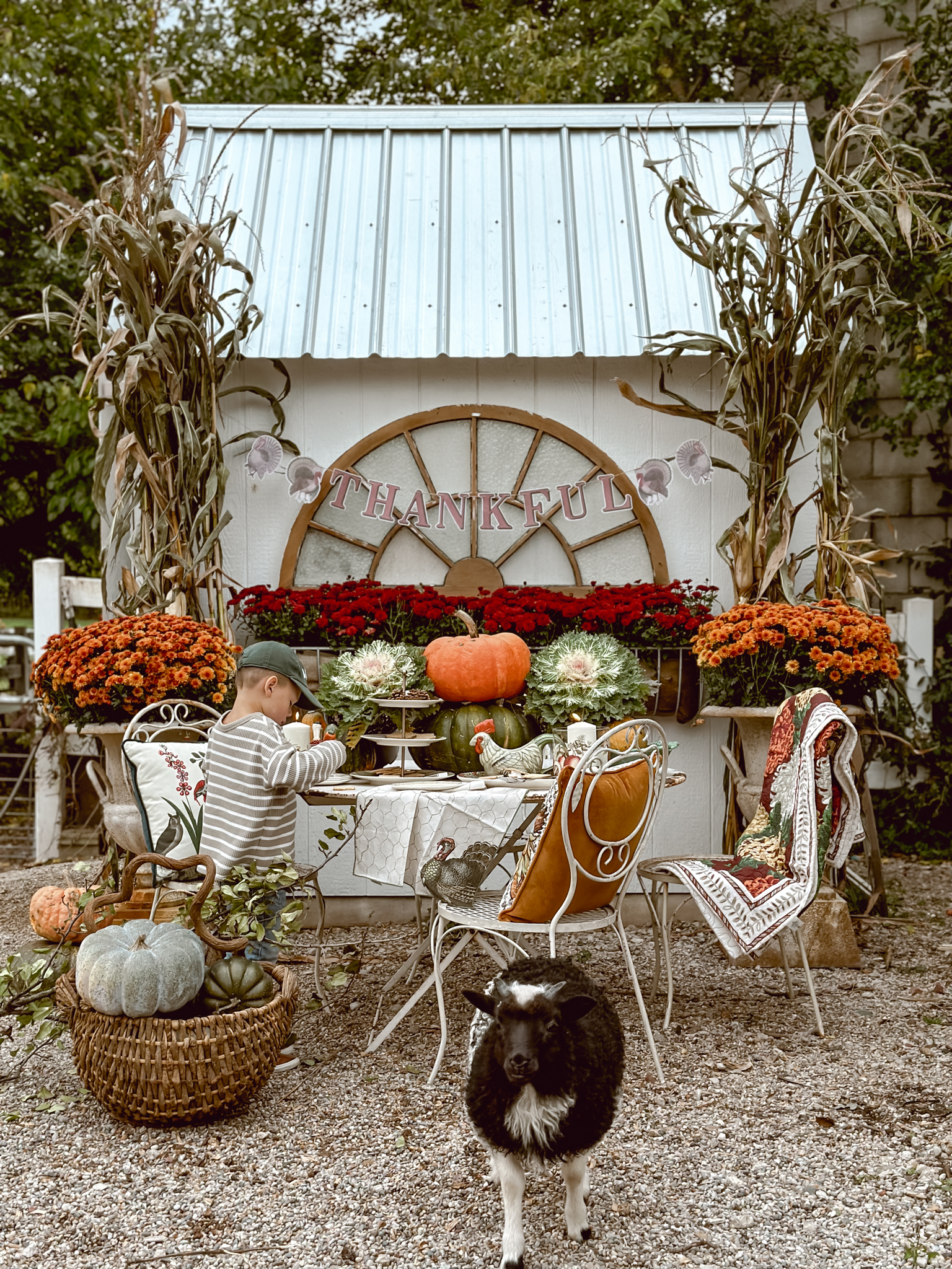As the season’s first chill fills the air, I find myself itching to create cozy corners that celebrate all things autumn. There’s nothing more welcoming than a rustic tablescape surrounded by pumpkins and mums, and that’s exactly what inspired my latest outdoor oasis. With the new John Derian Thanksgiving Collection now available at Target, I couldn’t resist the opportunity to mix these vintage-inspired pieces among an abundance of natural elements. A stack of pumpkins & cabbage, bundled corn stalks and arrangements mums, what more do you need? As much as I’ve been loving putting together all these cozy autumnal displays outside, I can’t help but feel a tug of sadness each time I catch a glimpse at all of the colorful leaves. It’s like Mother Nature’s subtle reminder that the seasons just keep on changing whether we’re ready for them to or not. This year especially, it feels like summer slipped through our fingers before we could squeeze in all those lazy evenings around the fire pit.