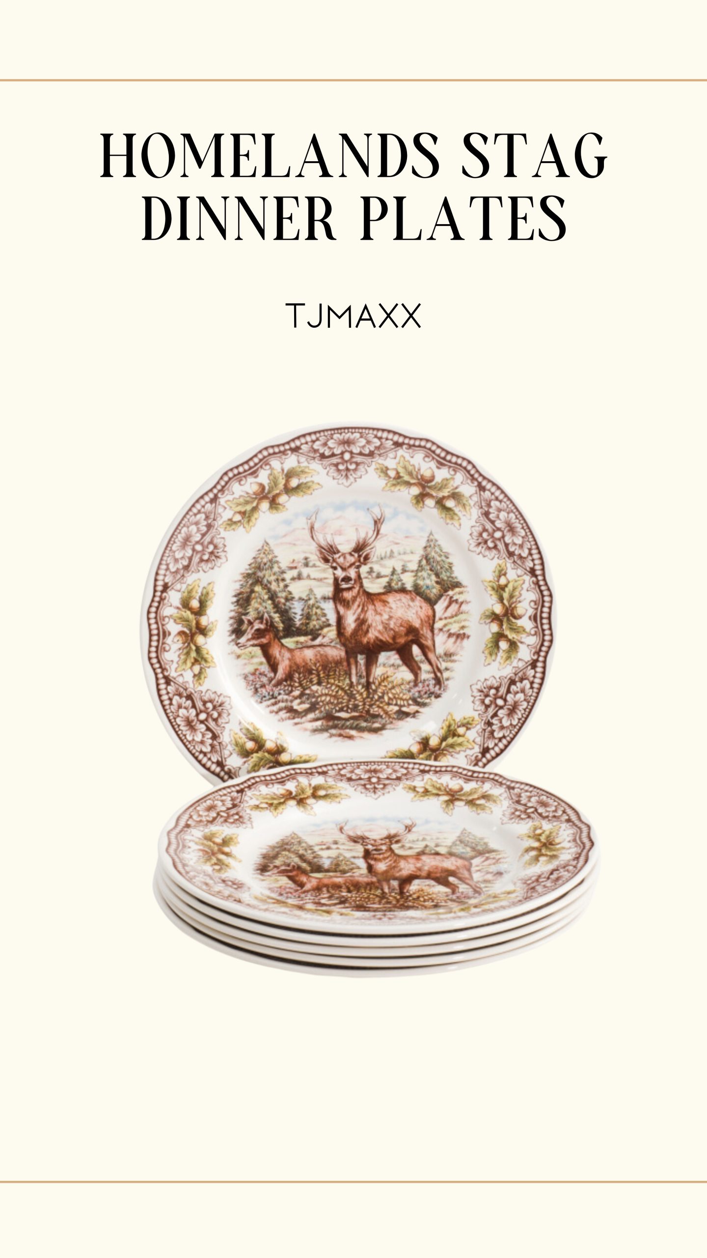 These beautiful stag dinner plates are perfect for cozy, intimate gatherings at home. The delicate design is so timeless, and I love how they instantly elevate any table setting—definitely a must-have for fall dinners with family and friends.