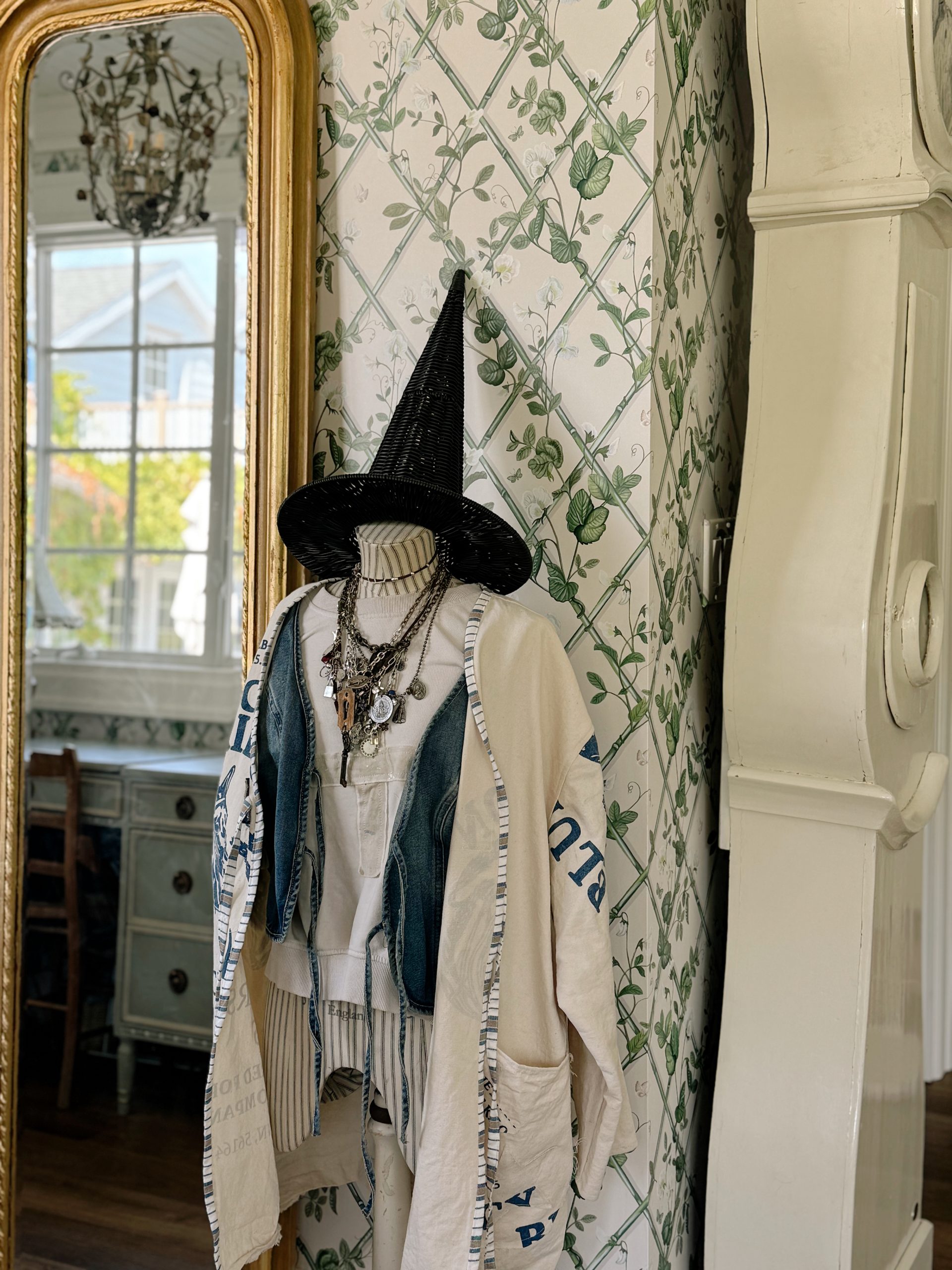 This rattan witch hat is the perfect blend of whimsy and rustic charm. I love how the natural rattan material makes it feel like a vintage find from a quaint little shop, but it also brings a touch of nature indoors, which is so important in creating that cozy cottage vibe. Whether you hang it on a door or display it on a mantel, it’s a subtle nod to Halloween that feels timeless.