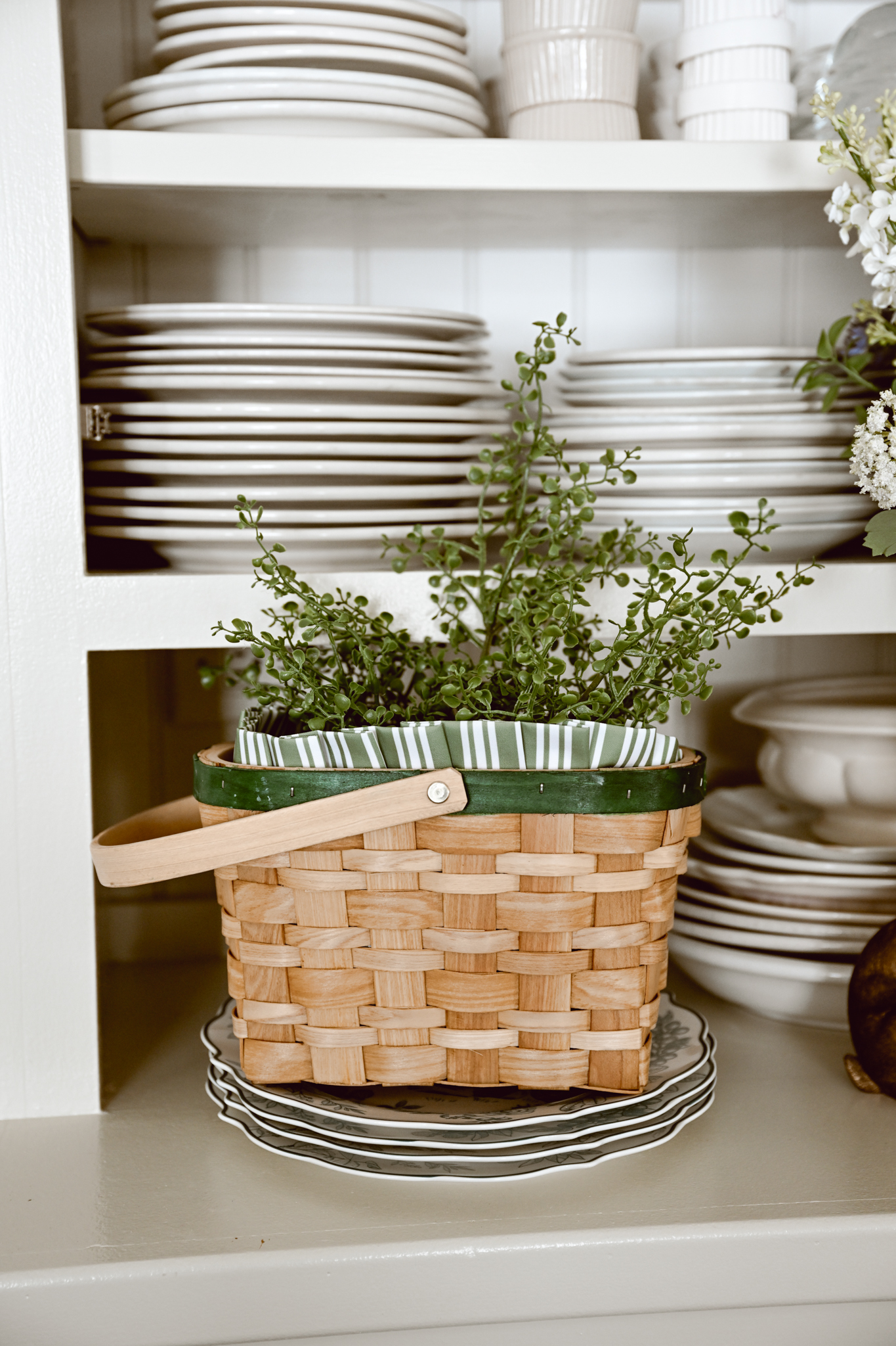 This woodchip basket is one of my favorite pieces for organizing and displaying. It has that rustic charm that works so beautifully in any space. Use it to store throws, pillows, or even flowers for a cozy, welcoming feel. It’s a perfect addition to your spring décor.