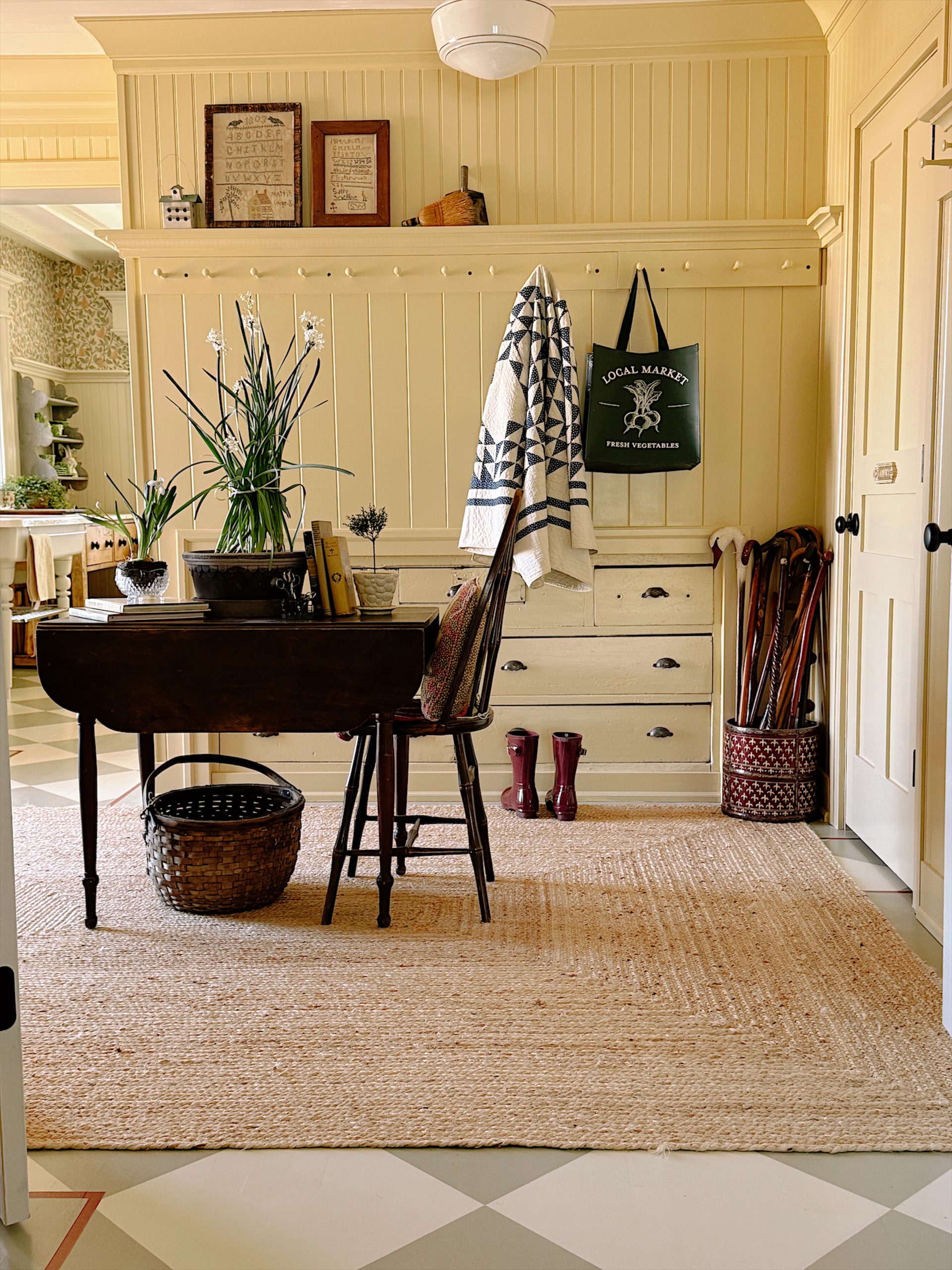 Our mudroom has always been a functional space—a catch-all for coats, boots, and the occasional muddy paw print. However, I envisioned it as more than just a pass-through area. By applying Hay No.37 to the walls, the room instantly transformed into a cozy retreat that warmly welcomes us home each day.